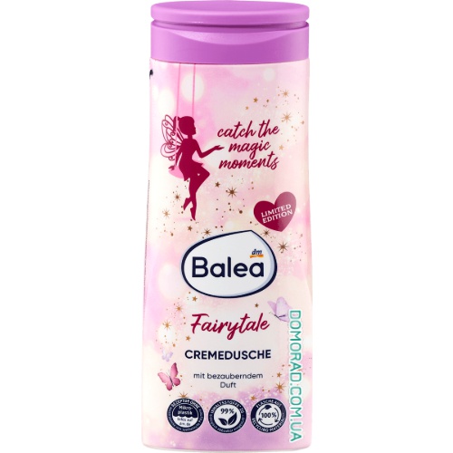 З кремовим гелем для душу Balea Fairytale кожна мить після душу стає трохи чарівною. Кремова текстура пестить шкіру та підходить навіть для чутливої шкіри. Формула, що не містить мікропластику та водорозчинних синтетичних полімерів, забезпечує чистий та приємний догляд. Нотка магії супроводжує ритуал догляду, запрошуючи вас на мить залишити повсякденне життя позаду та зануритися у чарівний світ благополуччя.