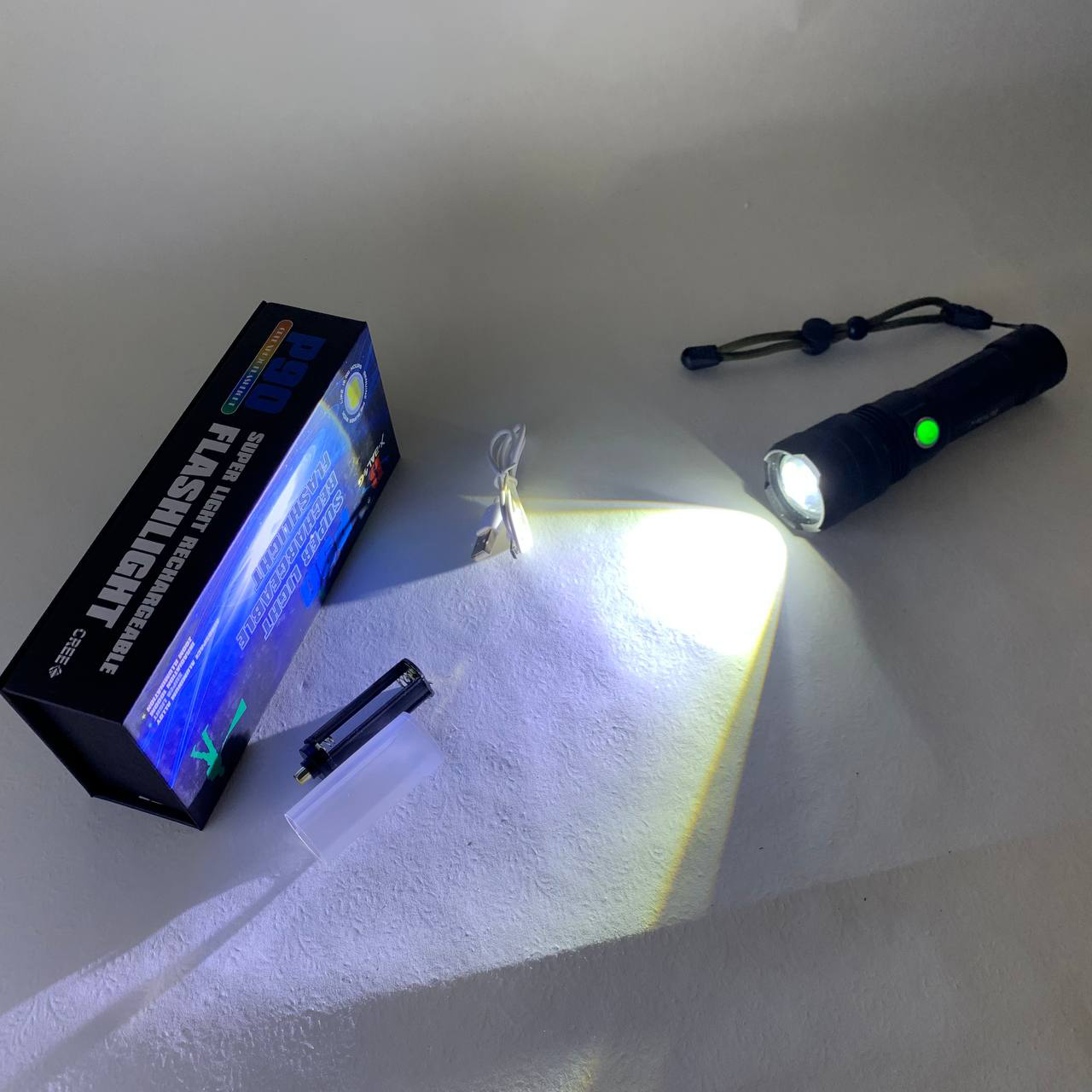 Ручной аккумуляторный светодиодный фонарь Police X-Balog BL-1827-P90 переносной с USB зарядкой оптическим зумом и металлическим корпусом + ремешок на руку