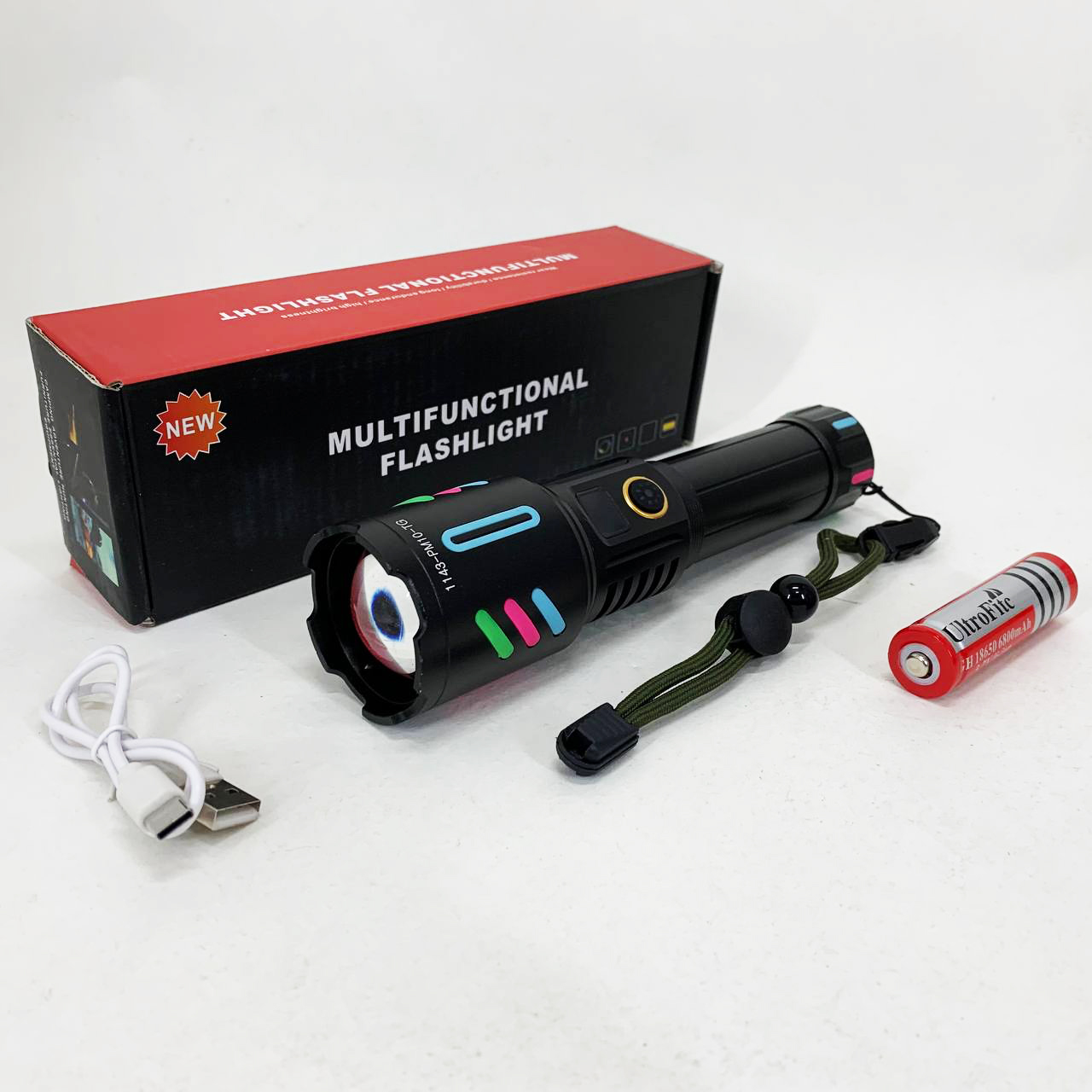 Мощный ручной фонарь с флуоресцентным покрытием и оптическим зумом. Работает от аккумулятора 1×18650 и имеет зарядку через USB. Имеет пять режимов работы: от яркого света до стробоскопа и SOS. Индикация заряда и пыле- и влагозащищенный корпус для надежной работы в любых условиях.
