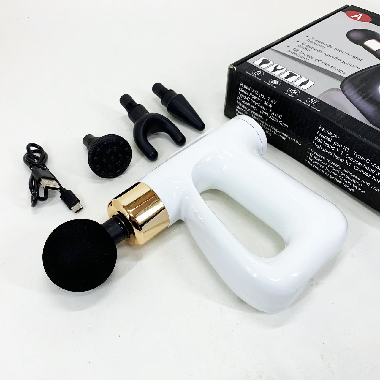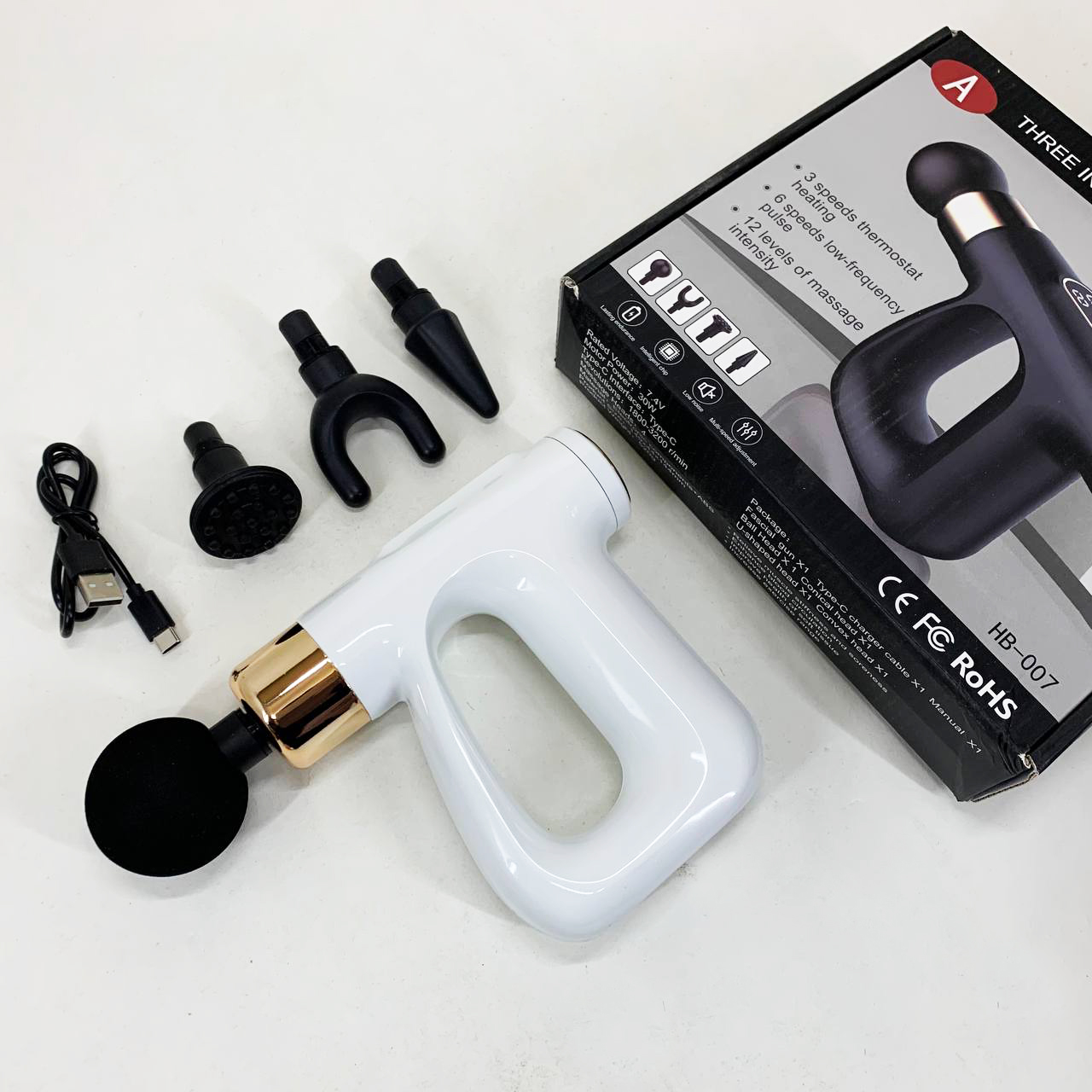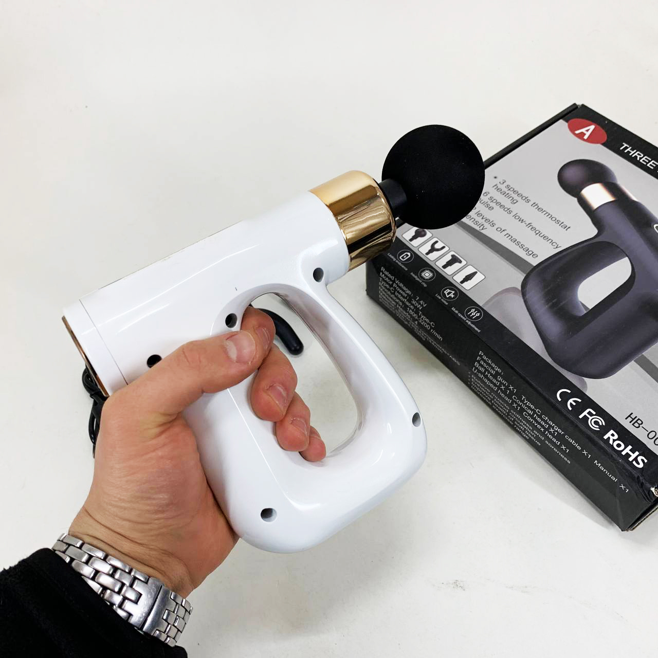 Ударный Перкуссионный массажер для тела и мышц Массажный пистолет EM HB-007 аккумуляторный белый