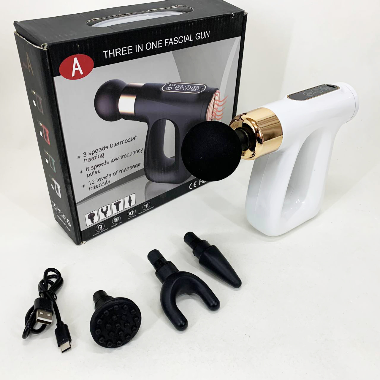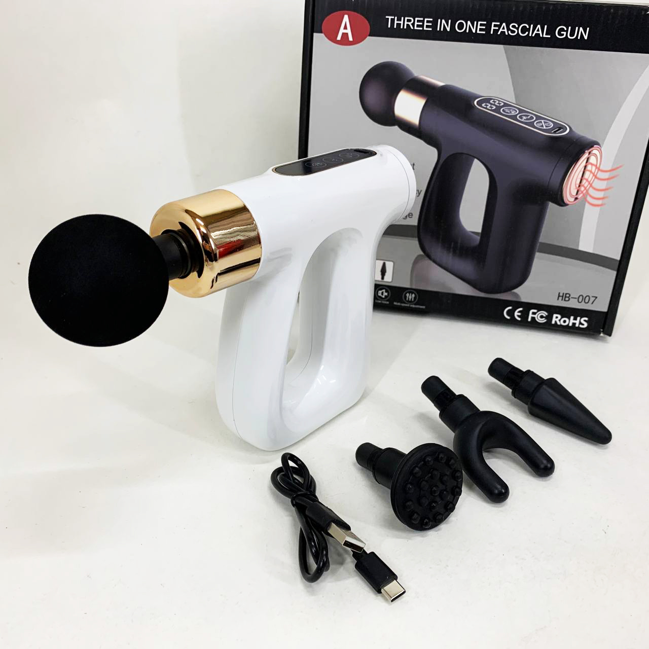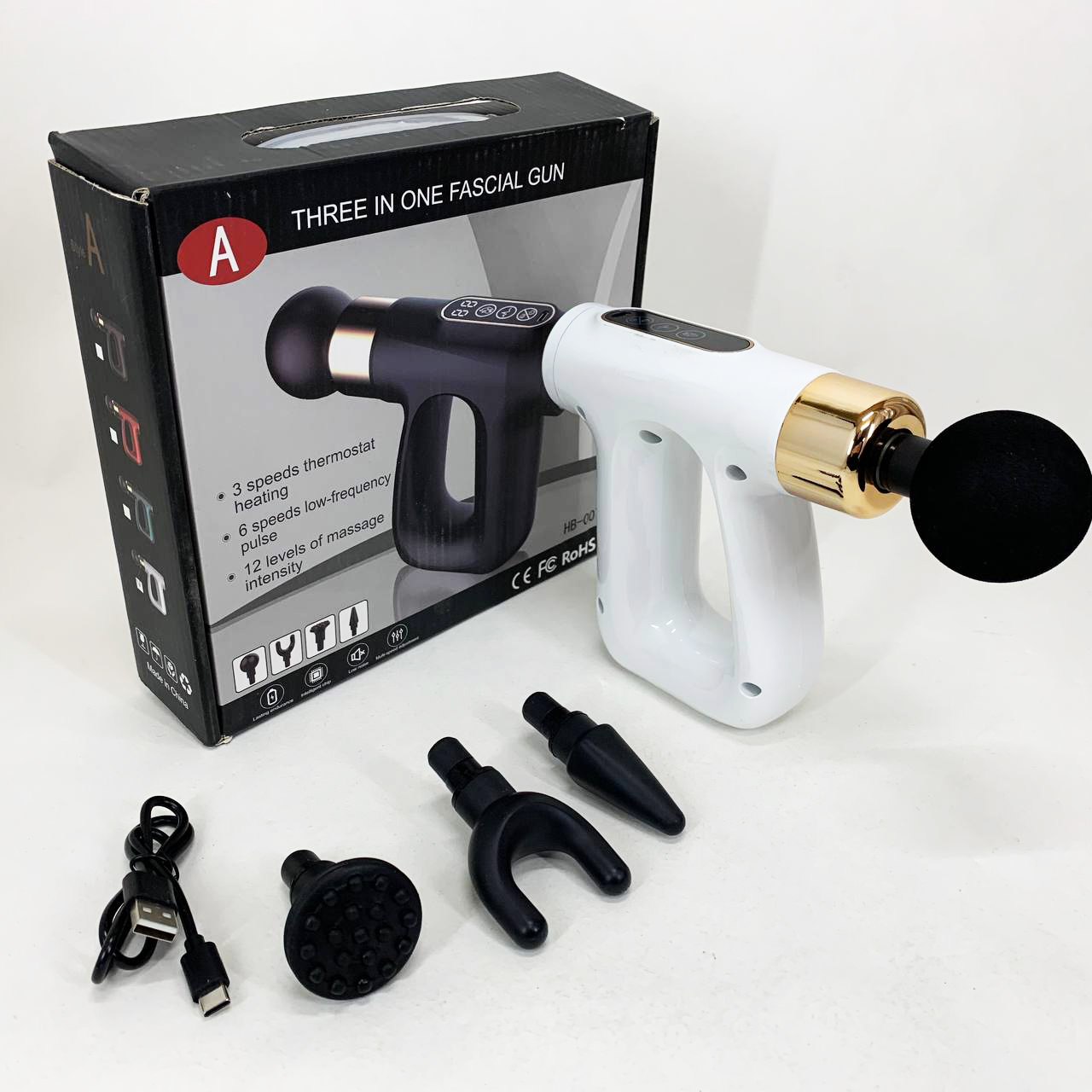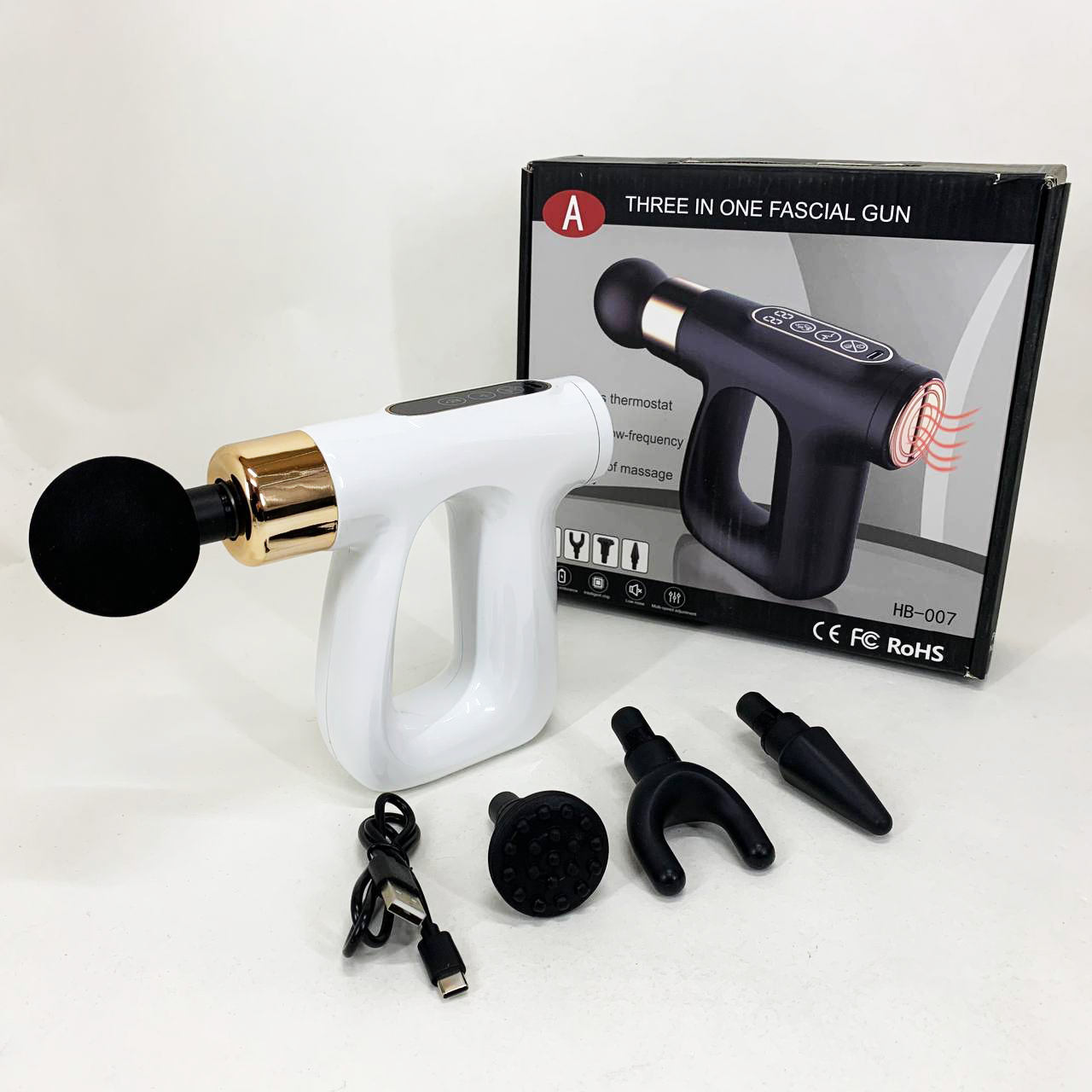 Ударный Перкуссионный массажер для тела и мышц Массажный пистолет EM HB-007 аккумуляторный белый