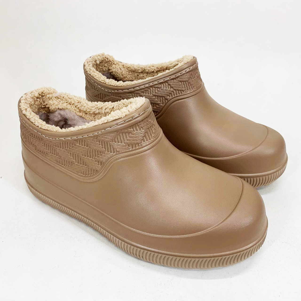 Элегантный бежевый цвет и декоративная текстура в верхней части придают изделию привлекательность, делая его актуальным не только для дома или огорода, но и для прогулок в городе. Галоши легко обуваются, а небольшая высота модели делает их удобными для ежедневного использования.