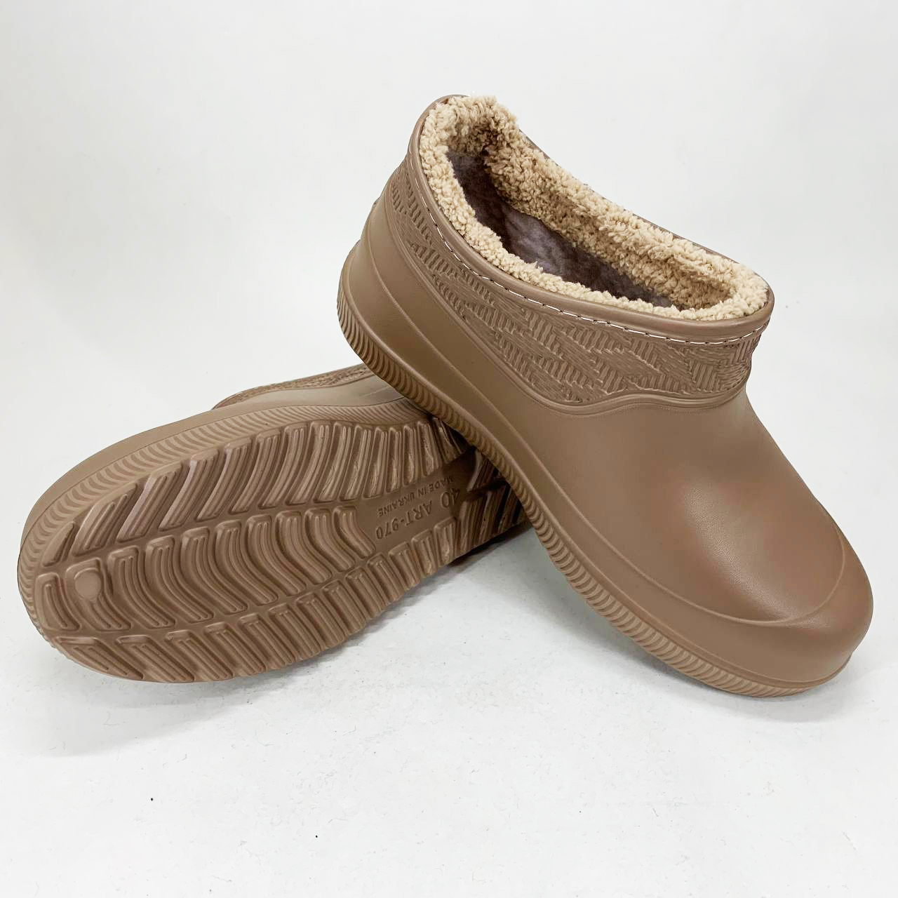 Утепленные женские галоши – это идеальное сочетание функциональности, практичности и комфорта. Они разработаны специально для холодной и сырой погоды, обеспечивая надежную защиту от влаги благодаря полностью литому корпусу. Внутренняя отделка из искусственного меха приятно оборачивает стопу и сохраняет тепло, что позволяет с комфортом использовать обувь в осенне-зимний период.