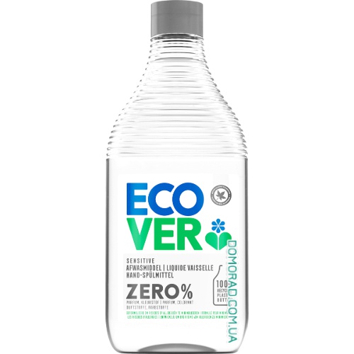 Засіб для миття посуду Ecover Zero спеціально розроблений для мінімізації ризику алергії. Він дерматологічно протестований та ніжний до шкіри. Містить 0% парфумерної композиції та 0% барвників.