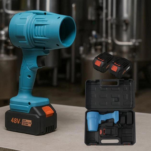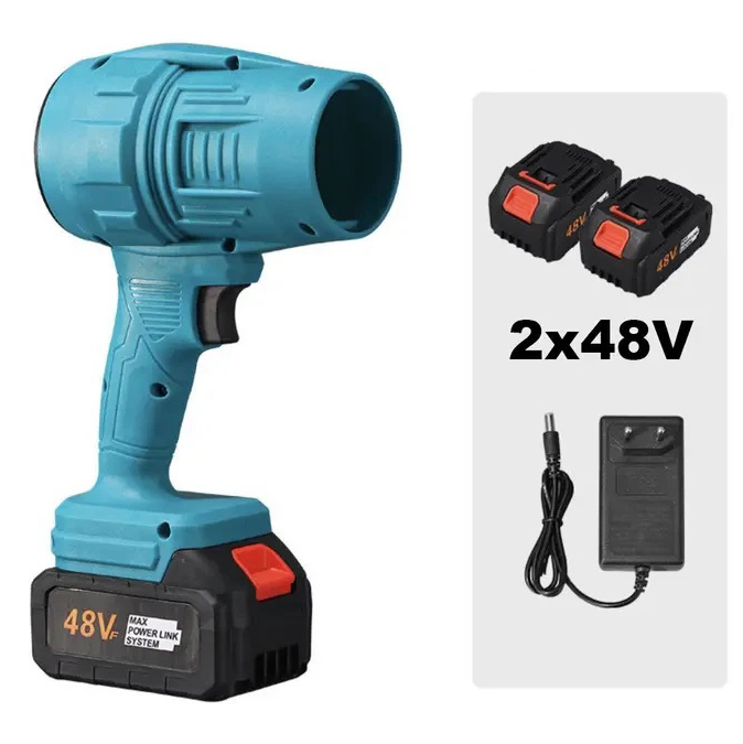 Аккумуляторная турбовоздуходувка 48В, 2×6Ач, бесщеточная, Jet Fan до 200 миль/ч, кейс, для листьев, снега и пыли
