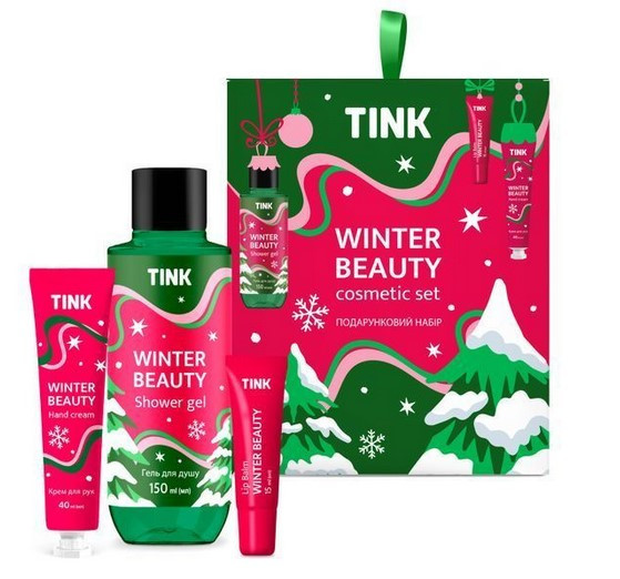 Жіночий подарунковий набір для зимового догляду за шкірою Tink Winter Beauty (крем для рук, бальзам для губ, гель для душу)