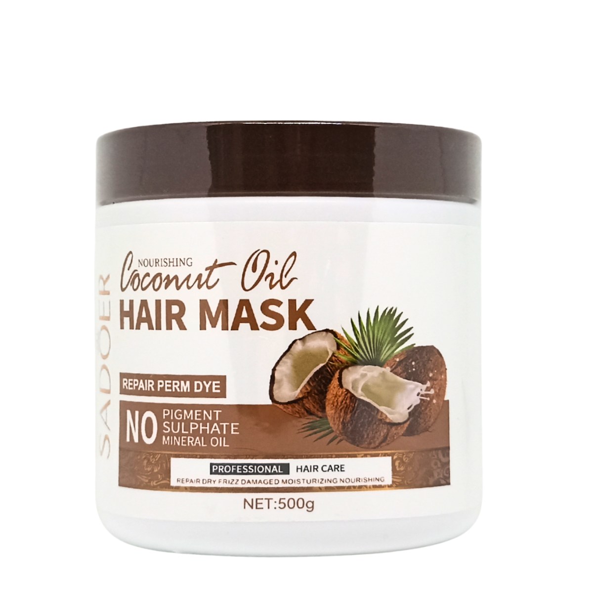 Маска для відновлення ламкого та пошкодженого волосся Sadoer Nourishing Coconut Oil Hair Mask з кокосовою олієюМаска Sadoer Nourishing Coconut Oil Hair Mask створена для інтенсивного живлення, зволоження та глибокого відновлення ламкого й пошкодженого волосся. Завдяки професійній формулі без мінеральної оливи сульфатів засіб повертає волоссю м'якість, еластичність і природний блиск. Ідеально підходить для догляду після хімічної завивки та регулярного домашнього відновлення.Основні властивостіЯк працює:відновлює пошкоджене та ламке волосся по всій довжині; глибоко живить і зволожує, усуваючи сухість; покращує еластичність і запобігає ламкості; полегшує розчісування та надає гладкість; надає волоссю здорового, доглянутого вигляду.Активні компонентиЯк діють активи засобу:кокосова олія - живить, зволожує, пом'якшує волосся та захищає від пересушування; гідролізовані протеїни пшениці - відновлюють структуру волосся, підсилюють його міцність та еластичність; сквалан - забезпечує глибоке зволоження та допомагає утримувати вологу; вітамін Е - антиоксидант, який зміцнює волосся та покращує його зовнішній вигляд.Кому підходитьЦей засіб ідеальний для:пошкодженого та ламкого волосся; волосся після хімічної завивки; сухого та тьмяного волосся, якому бракує зволоження; тих, хто шукає професійний догляд без агресивних компонентів.Ефект від використанняеластичне, доглянуте та м'яке волосся; інтенсивне живлення та зволоження; зменшення ламкості та посіченості; здоровий блиск і гладкість.Спосіб використанняНанесіть маску на чисте вологе волосся після миття шампунем. Розподіліть рівномірно та помасажуйте 2-3 хвилини. Змийте теплою водою.Об'єм та форма випускуБанка 500 г. Професійна формула без мінеральних олив і сульфатів.
