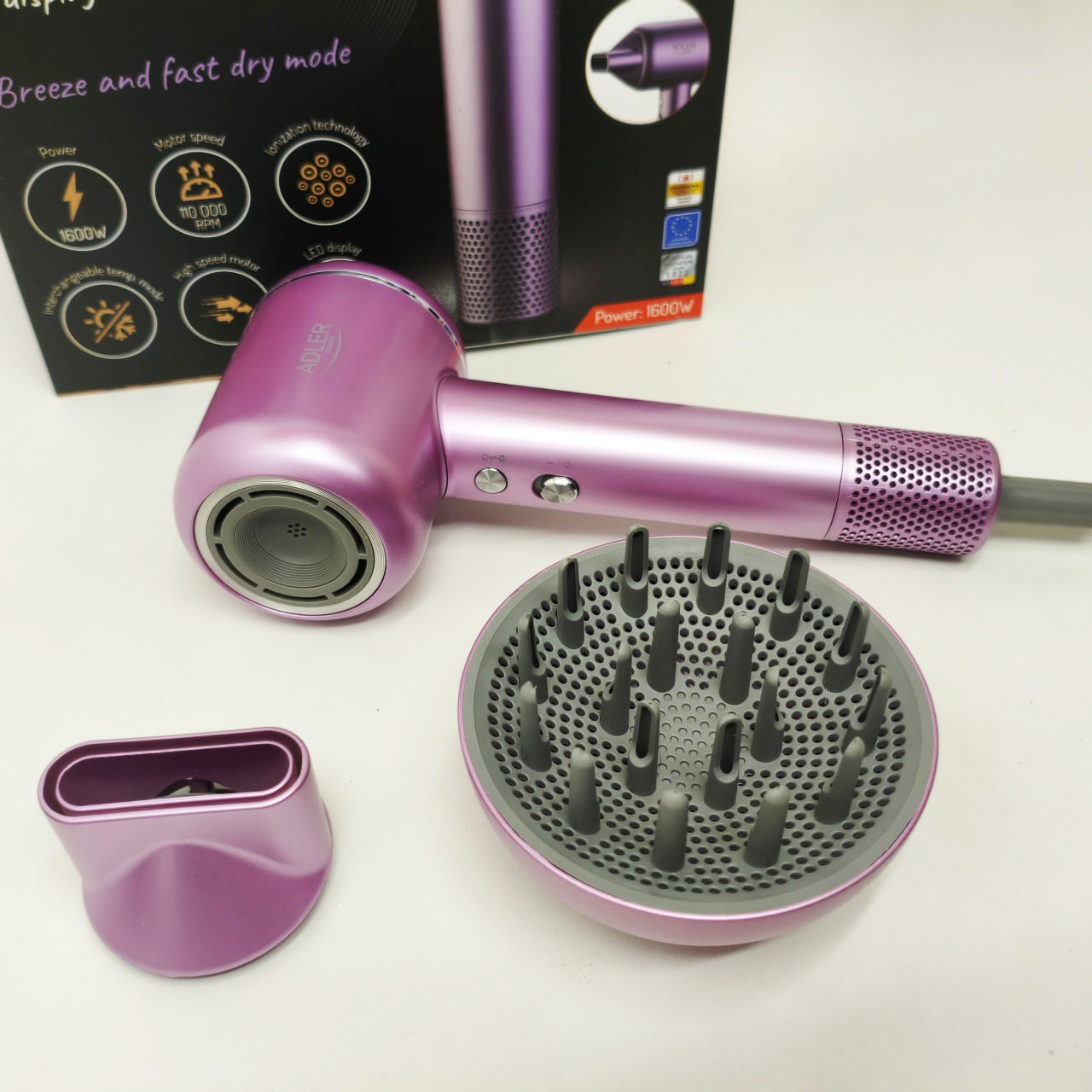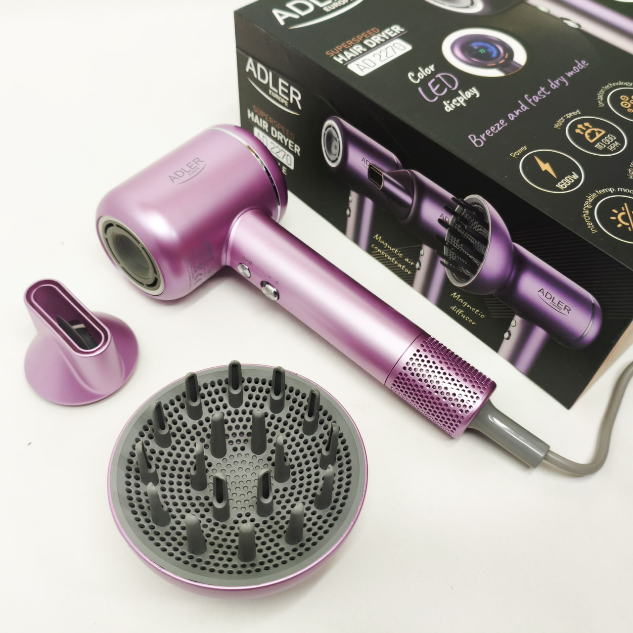 Фен для волос ADLER AD 2270P SUPERSPEED 1600Вт с дисплеем ионизация