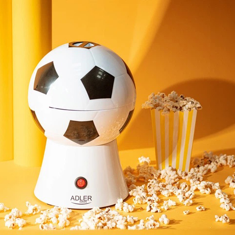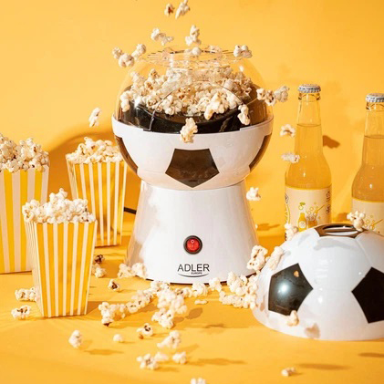 Попкорн для игры - Отличное сочетание! Особенно тот, который приготовлен в шариковом аппарате для попкорна Adler AD 4479! Машина имеет уникальный внешний вид, который наверняка понравится любителям футбольных игр. При этом готовится попкорн быстро и, что немаловажно, обезжирено. Благодаря этому вы можете наслаждаться попкорном без вреда для здоровья. Крышка AD 4479 также служит миской, в которой можно подавать попкорн членам семьи или приглашенным гостям.