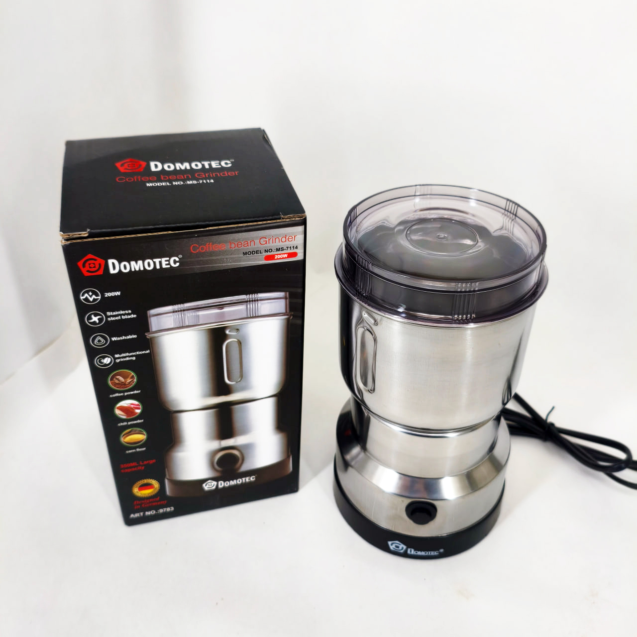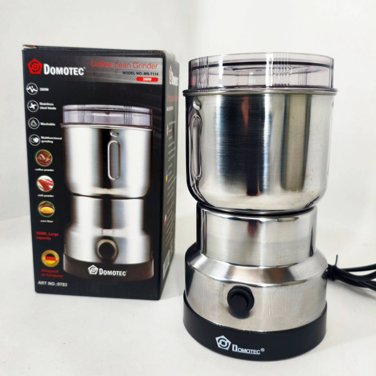 Электрическая кофемолка-измельчитель Domotec MS-7114 — это незаменимое устройство для ценителей свежемолотого кофе и домашней кухни. Изготовленная из высококачественной нержавеющей стали, эта кофемолка сочетает в себе надежность, стиль и высокую производительность.