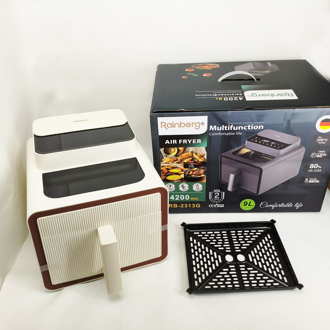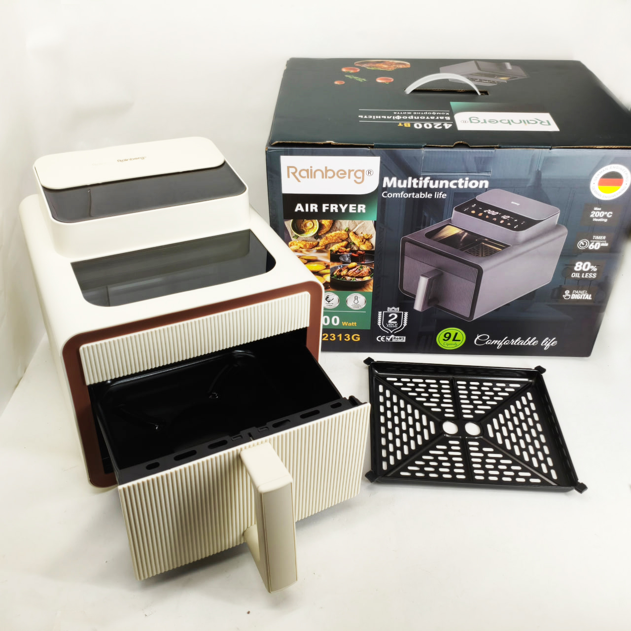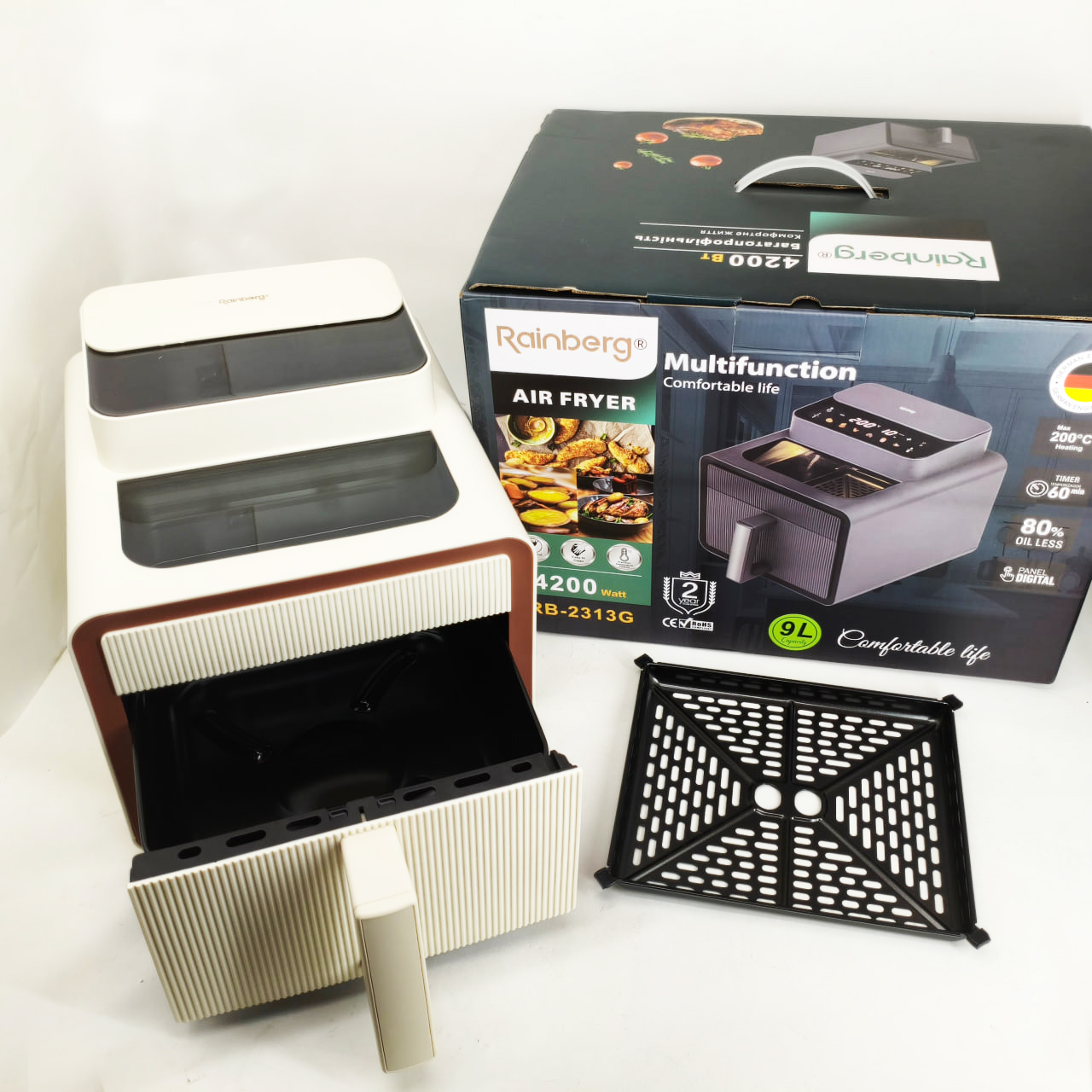 Аэрофритюрница Rainberg RB-2313 Мощный аэрогриль 4200Вт Фритюрница бесмасляная 9л Мультипечь