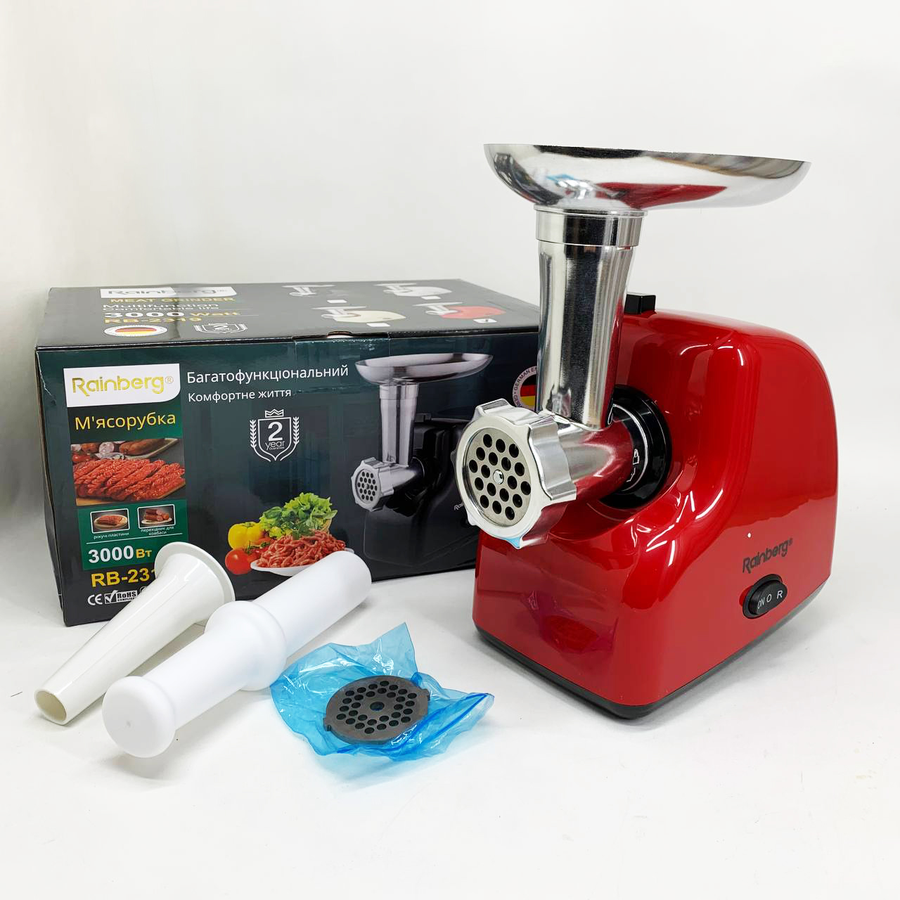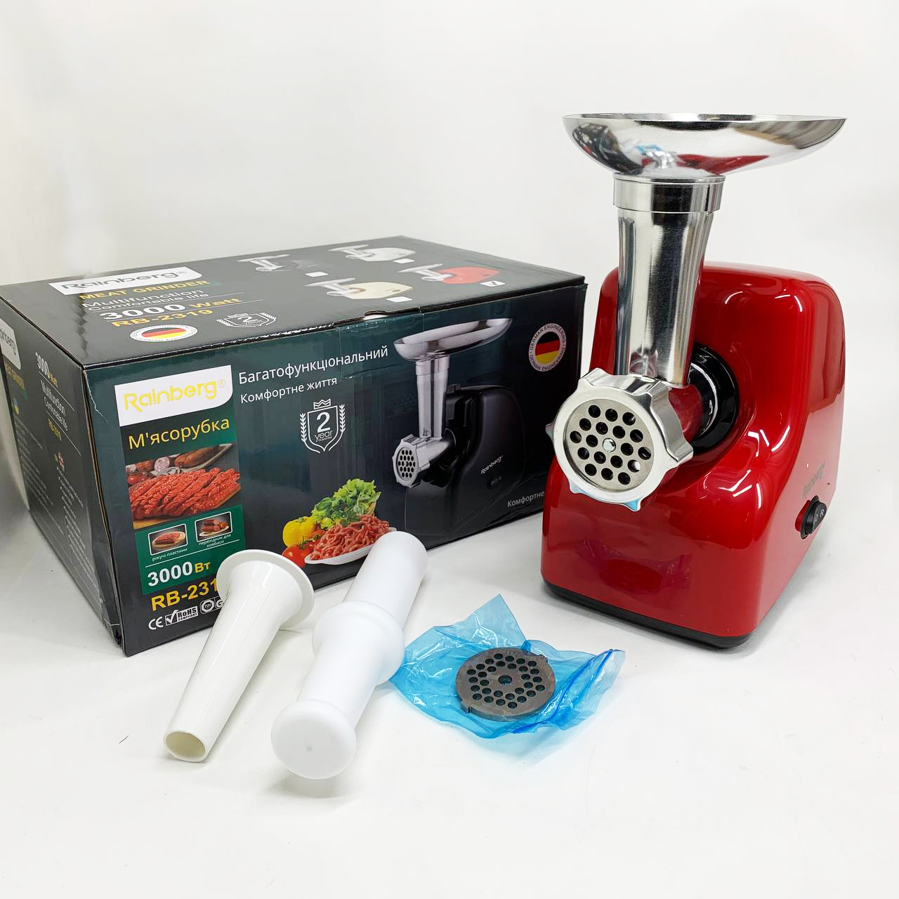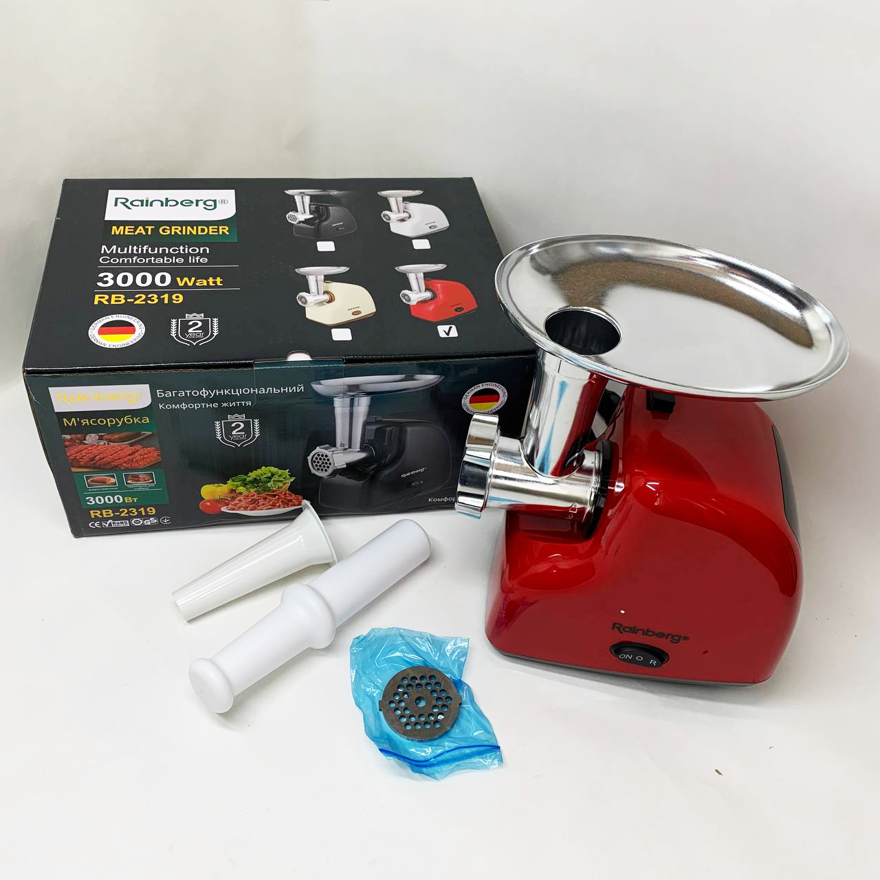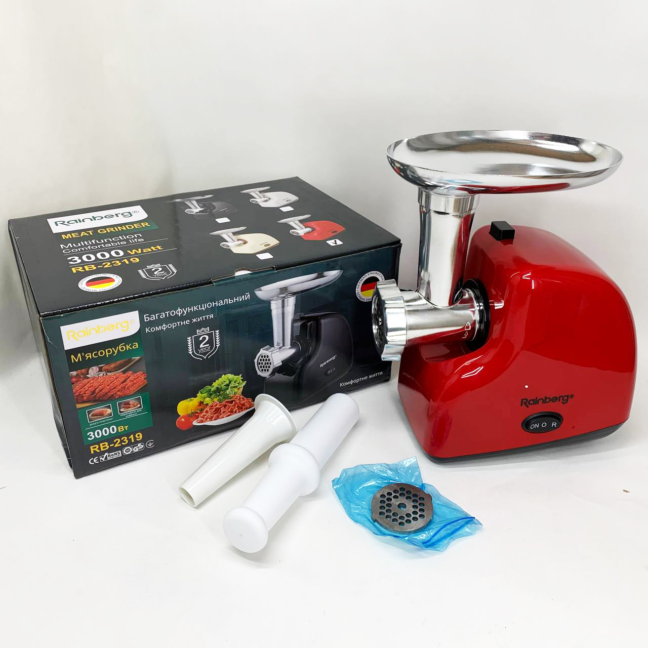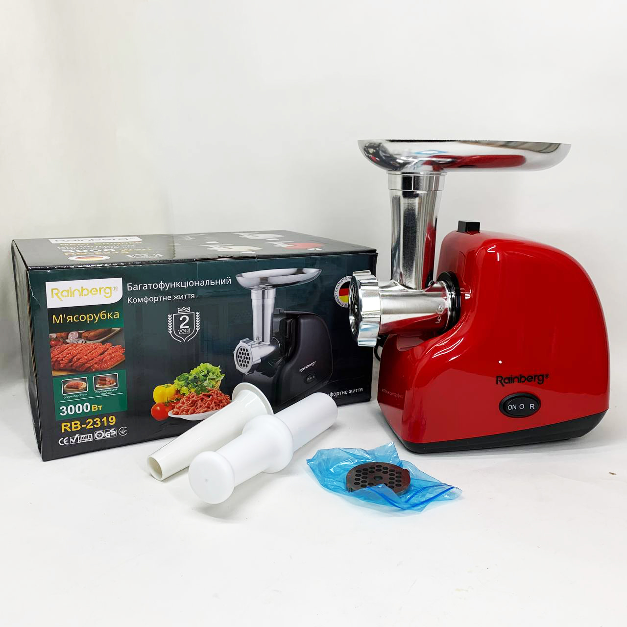 Мясорубка электрическая Rainberg RB-2319 с системой реверса насадка куббе 3000Вт Red