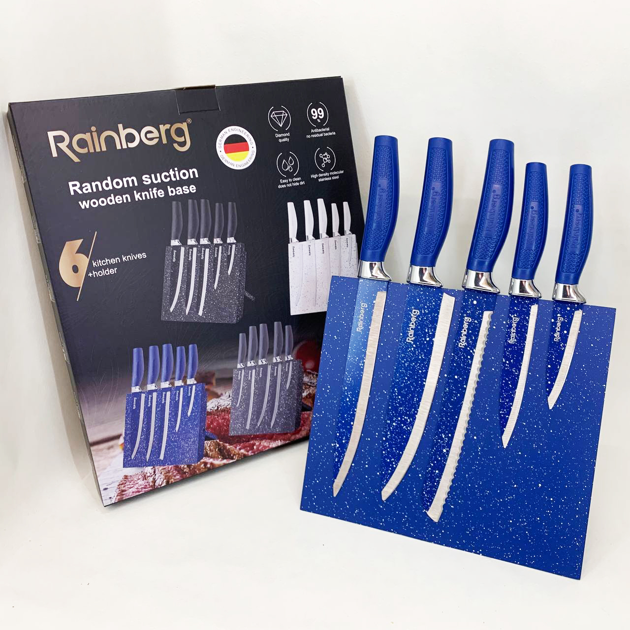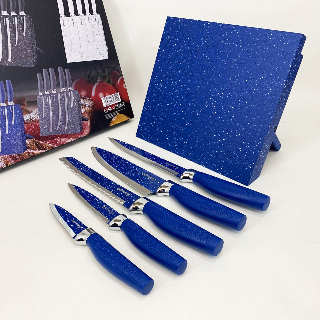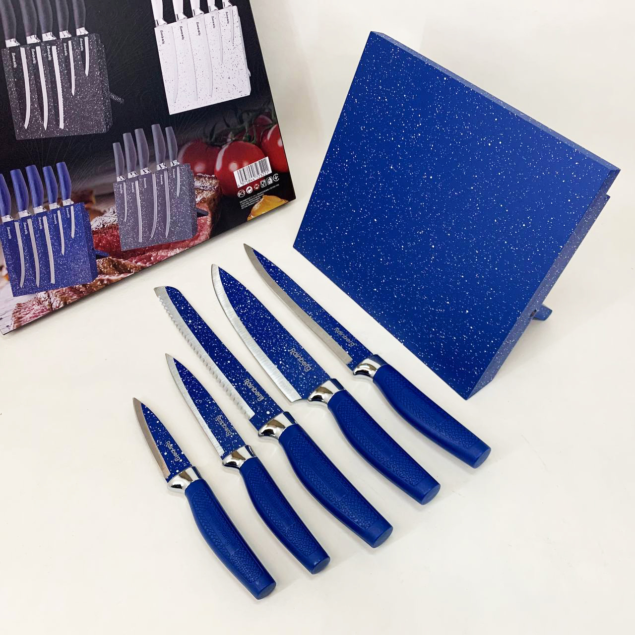 Набор ножей Rainberg RB-2322 из нержавеющей стали с магнитным основанием Blue