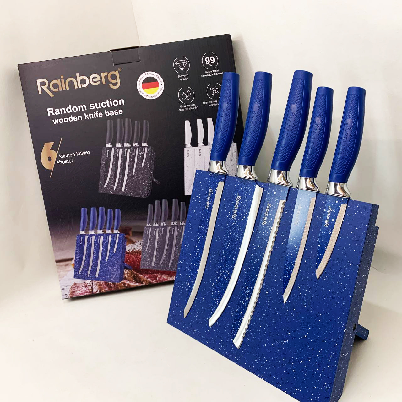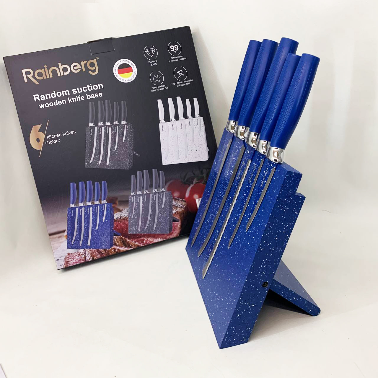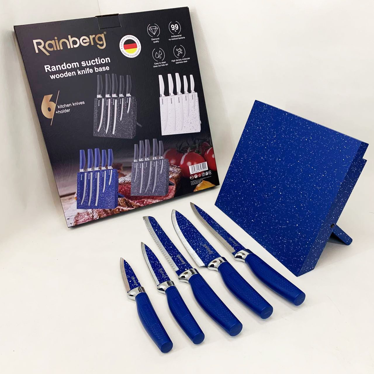 Набор ножей Rainberg RB-2322 из нержавеющей стали с магнитным основанием Blue