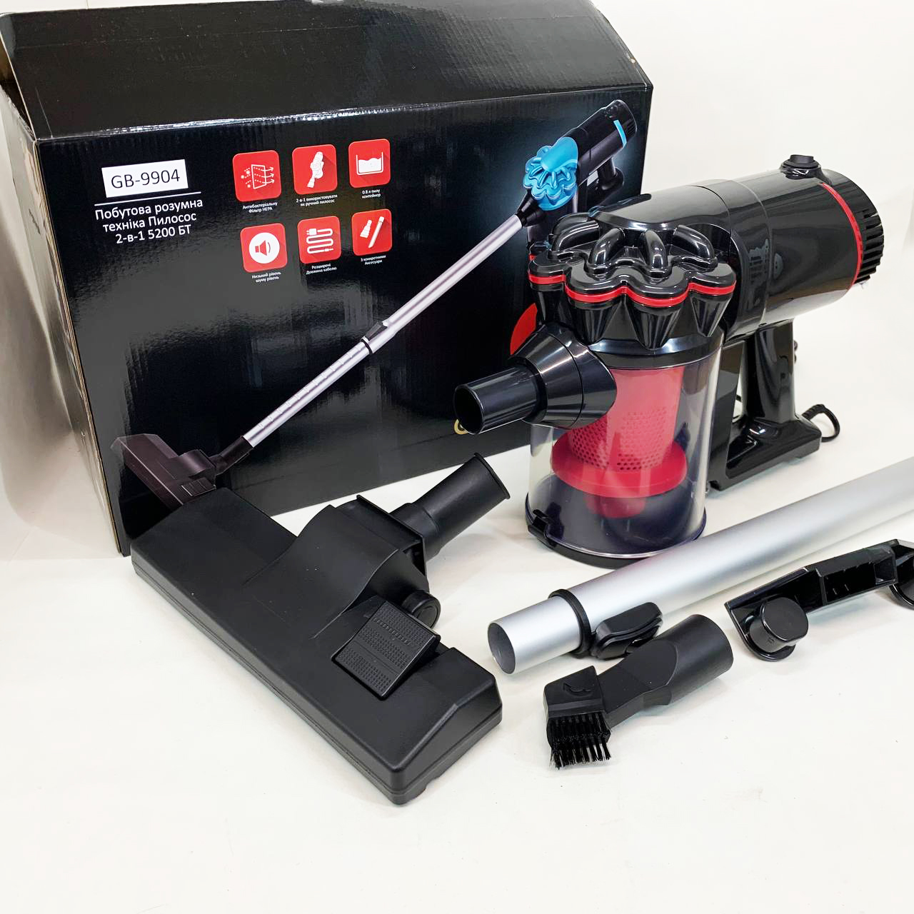 Вертикальный пылесос GOLDBERG GB-9904 – ручной проводной пылесос GOLDBERG GB-9904 обеспечит Вам качественную уборку любых поверхностей за счет двойного двигателя и модульной конструкции для различных насадок.