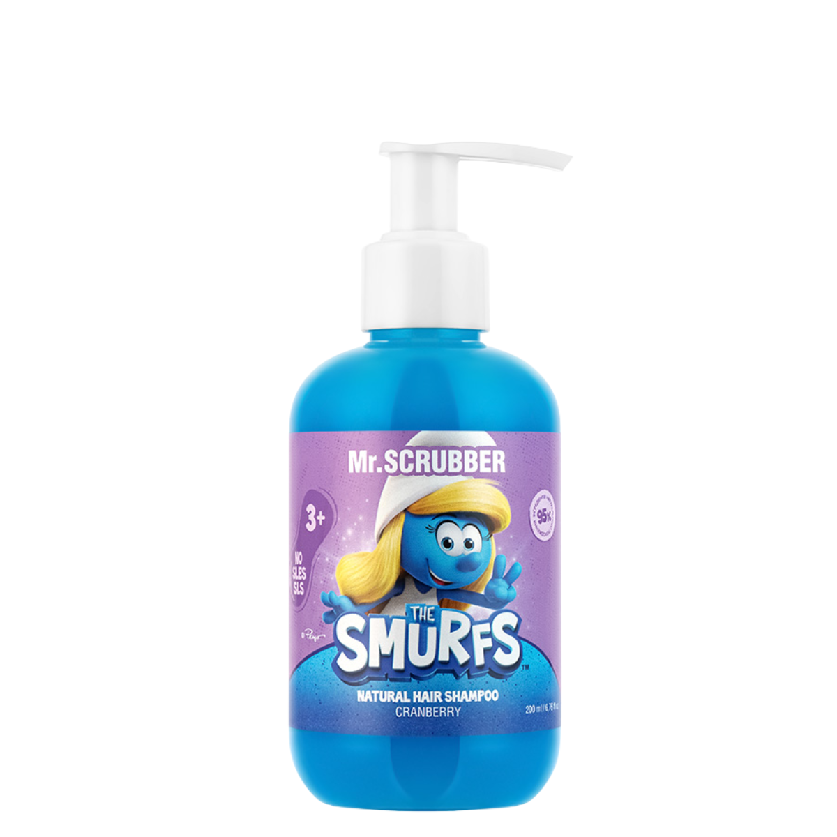 Натуральний дитячий шампунь для волосся Mr.Scrubber The Smurfs — з пантенолом і соком алое, від 3 роківНатуральний дитячий шампунь The Smurfs від Mr.SCRUBBER створений для м'якого та безпечного догляду за волоссям малюків. Він делікатно очищає шкіру голови, не подразнює та не пересушує. Яскравий аромат журавлини та легка текстура роблять миття волосся приємним щоденним ритуалом. Шампунь для дітей від Mr. Scrubber має безпечну формулу, що на 95% складається з компонентів натурального походження.Основні властивостіЯк працює шампунь:м'яко очищає дитяче волосся і шкіру голови, не викликаючи сухості; допомагає підтримувати природний pH завдяки делікатним ПАР; полегшує розчісування завдяки доглядовій формулі; забезпечує комфорт під час щоденного використання.Активні компонентиЯк діють активи засобу дитячого шампуню:гліцерин - зволожує волосся і запобігає сухості шкіри голови; пантенол - заспокоює та сприяє відновленню шкіри, робить волосся м'яким; сік алое вера - підтримує баланс вологи, заспокоює та захищає шкіру; лимонна кислота - допомагає утримувати оптимальний pH для здорового волосся та шкіри.Кому підходитьЦей засіб ідеальний для:дітей від 3 років для регулярного догляду; чутливої шкіри голови, схильної до подразнень; тонкого дитячого волосся, яке потребує делікатного очищення; частого миття голови без ризику пересушування.Ефект від використанняРезультат при регулярному використанні дитячого шампуню "Смурфики" від Mr.Scrubber:чисте та м'яке волосся без сплутування; зволожена шкіра голови без подразнень; приємний аромат і легке розчісування; доглянутий вигляд волосся після кожного миття.Спосіб використанняНанести шампунь на вологе волосся та шкіру голови. Дбайливо спінити масажними рухами. Ретельно змити водою. Підходить для щоденного використання.Об'єм та форма випуску200 мл, флакон з дозатором