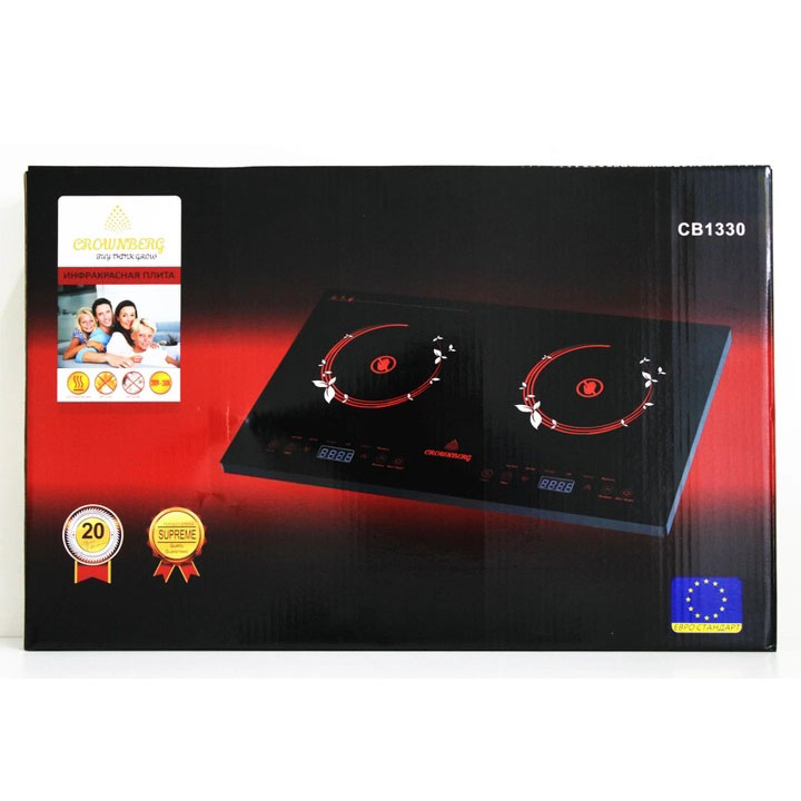 Инфракрасная двухкомфорочная плита Crownberg CB-1330 с сенсорным управлением 2000Вт