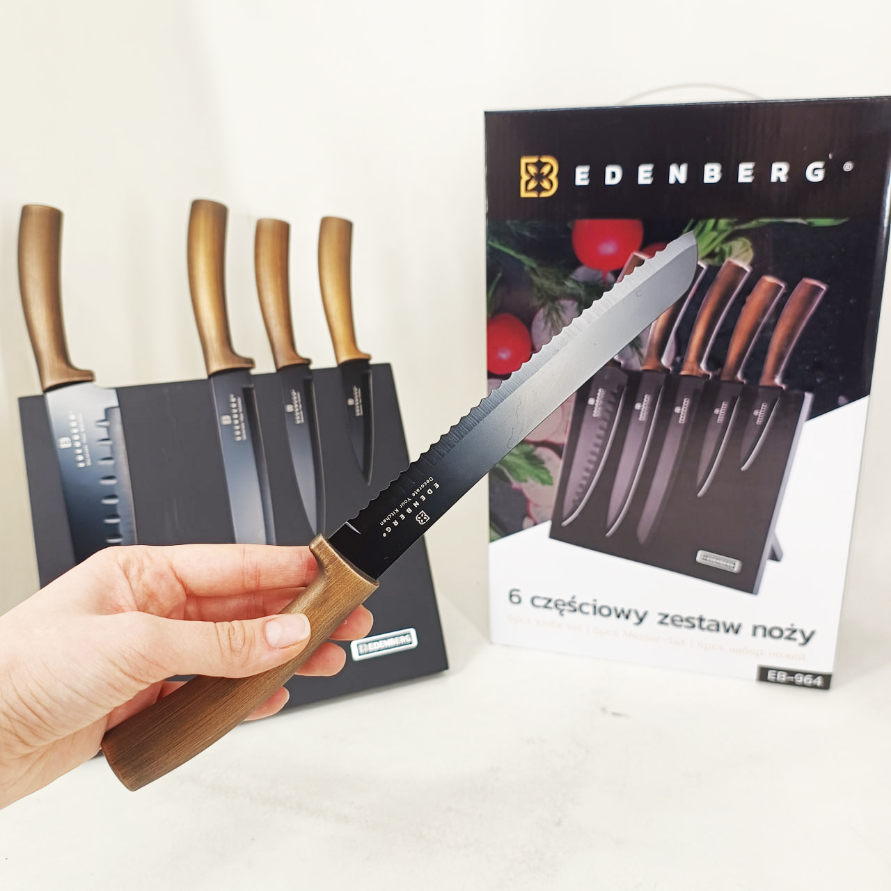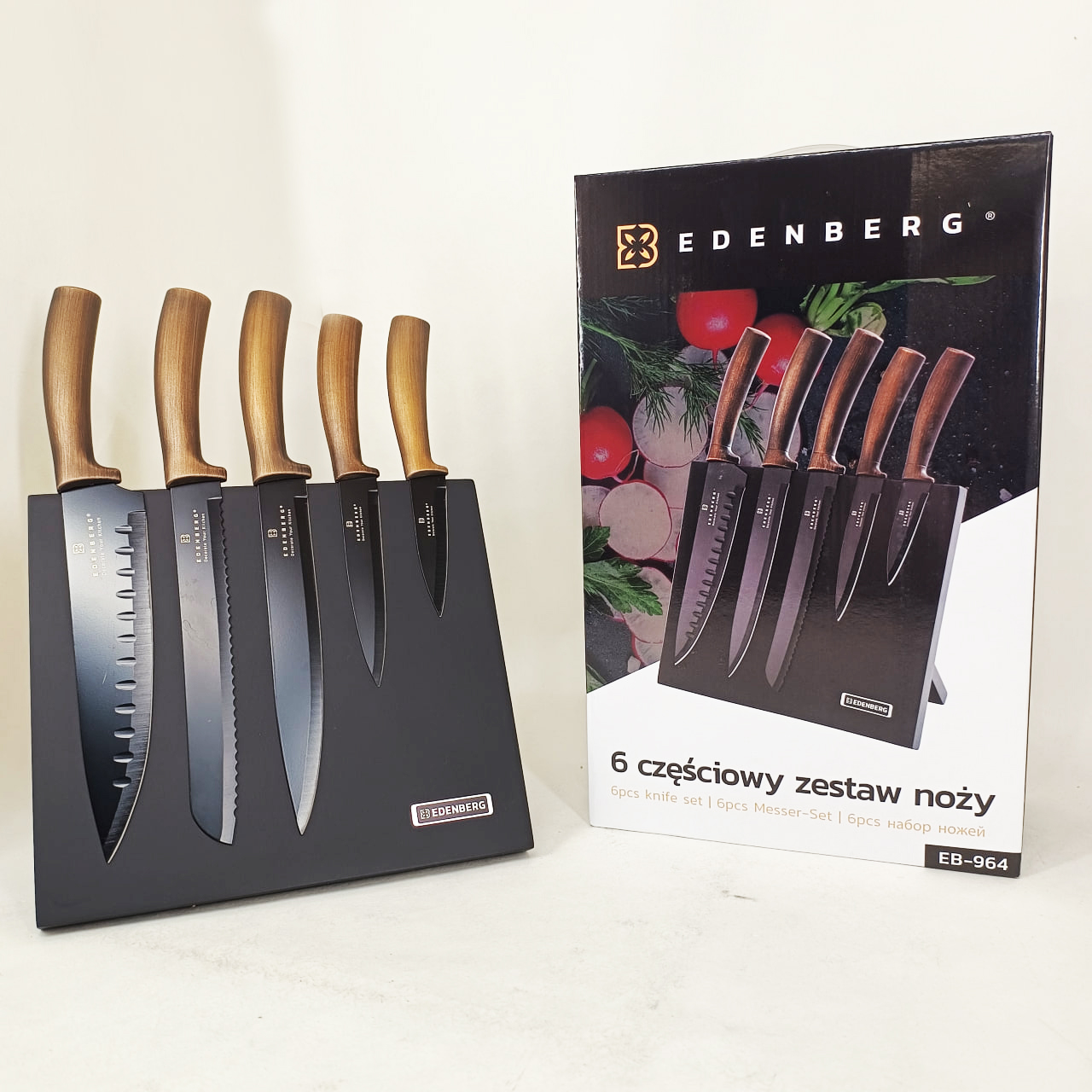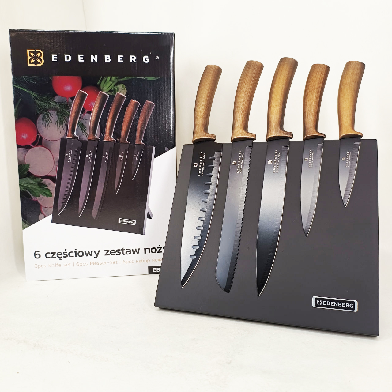 Набор ножей с магнитной подставкой Edenberg EB-964 керамическое покрытие 6 предметов