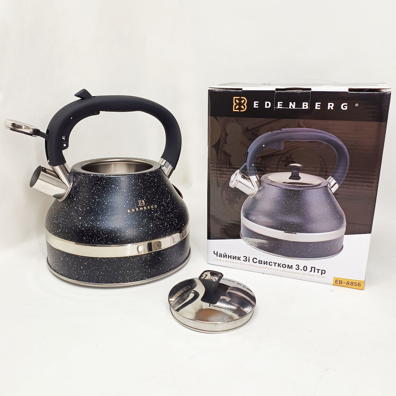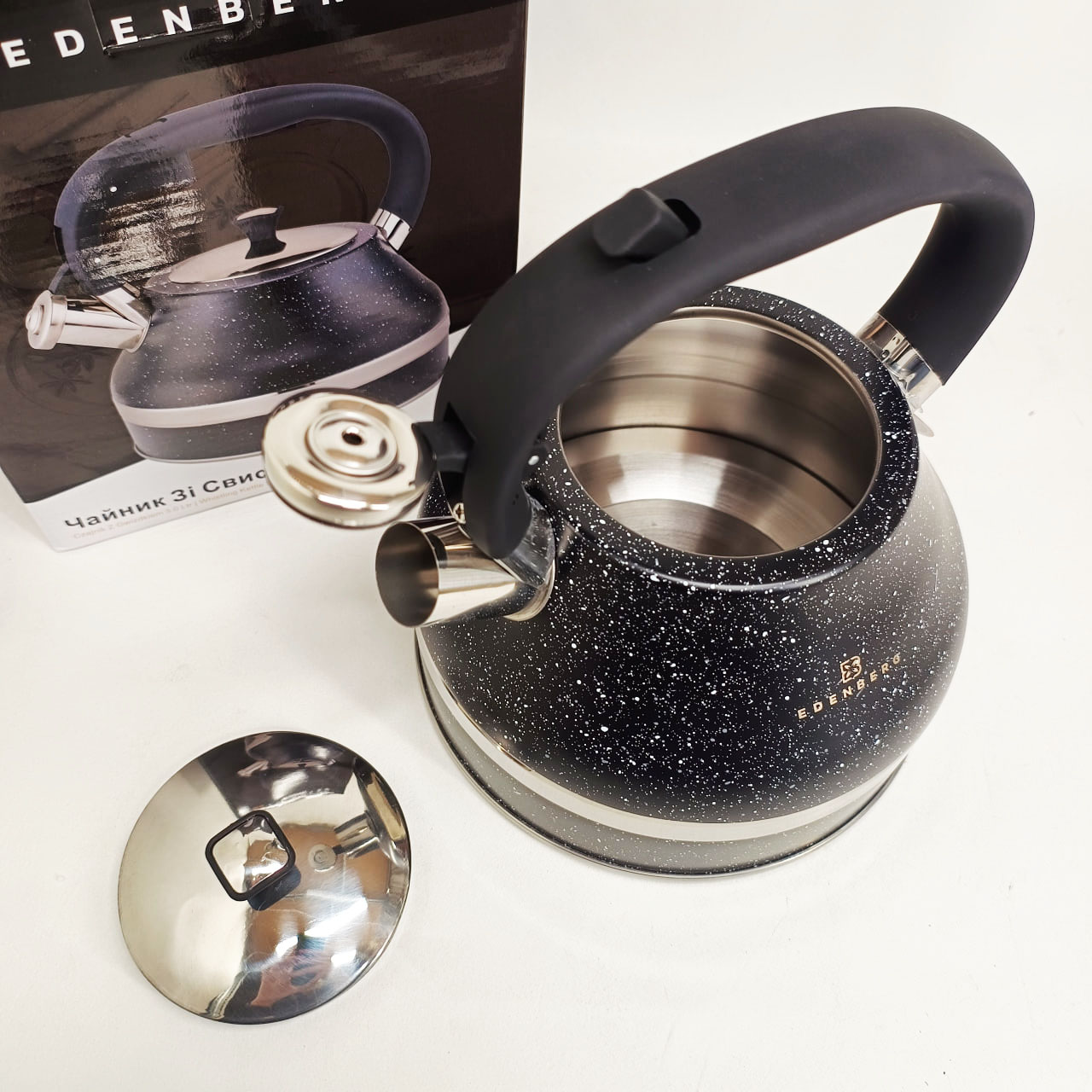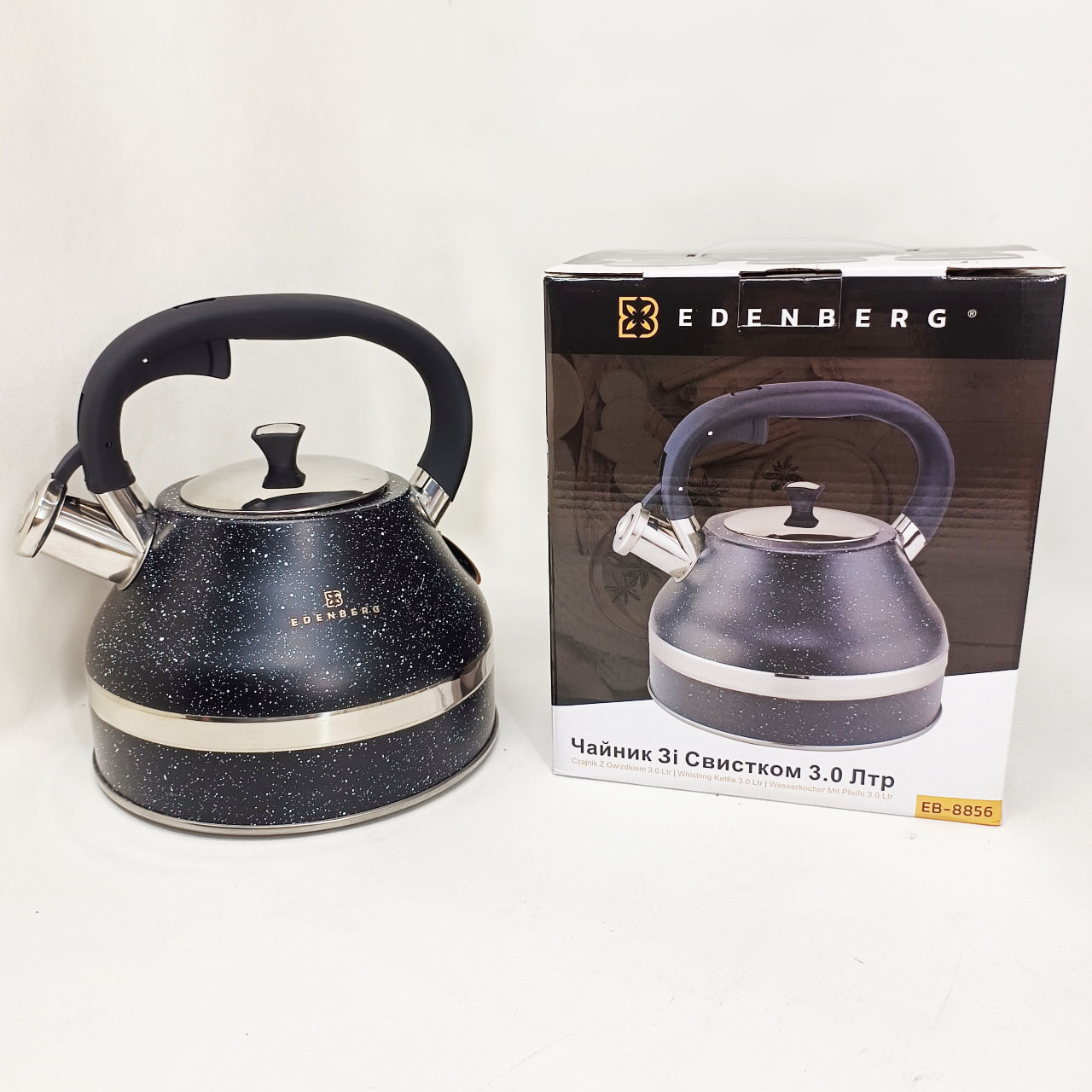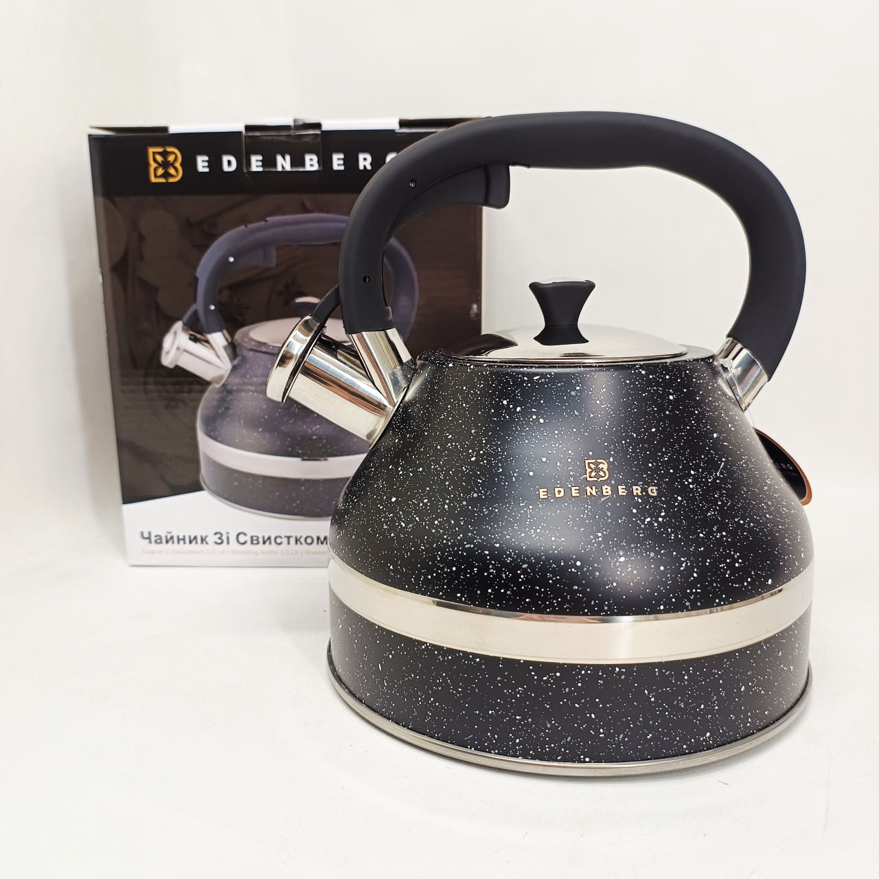 Чайник со свистком Edenberg EB-8856 с мраморным покрытием и турбо индукционным капсульным дном 3л Black