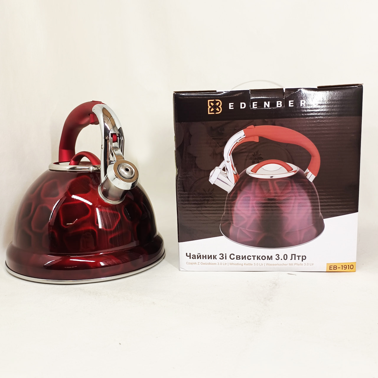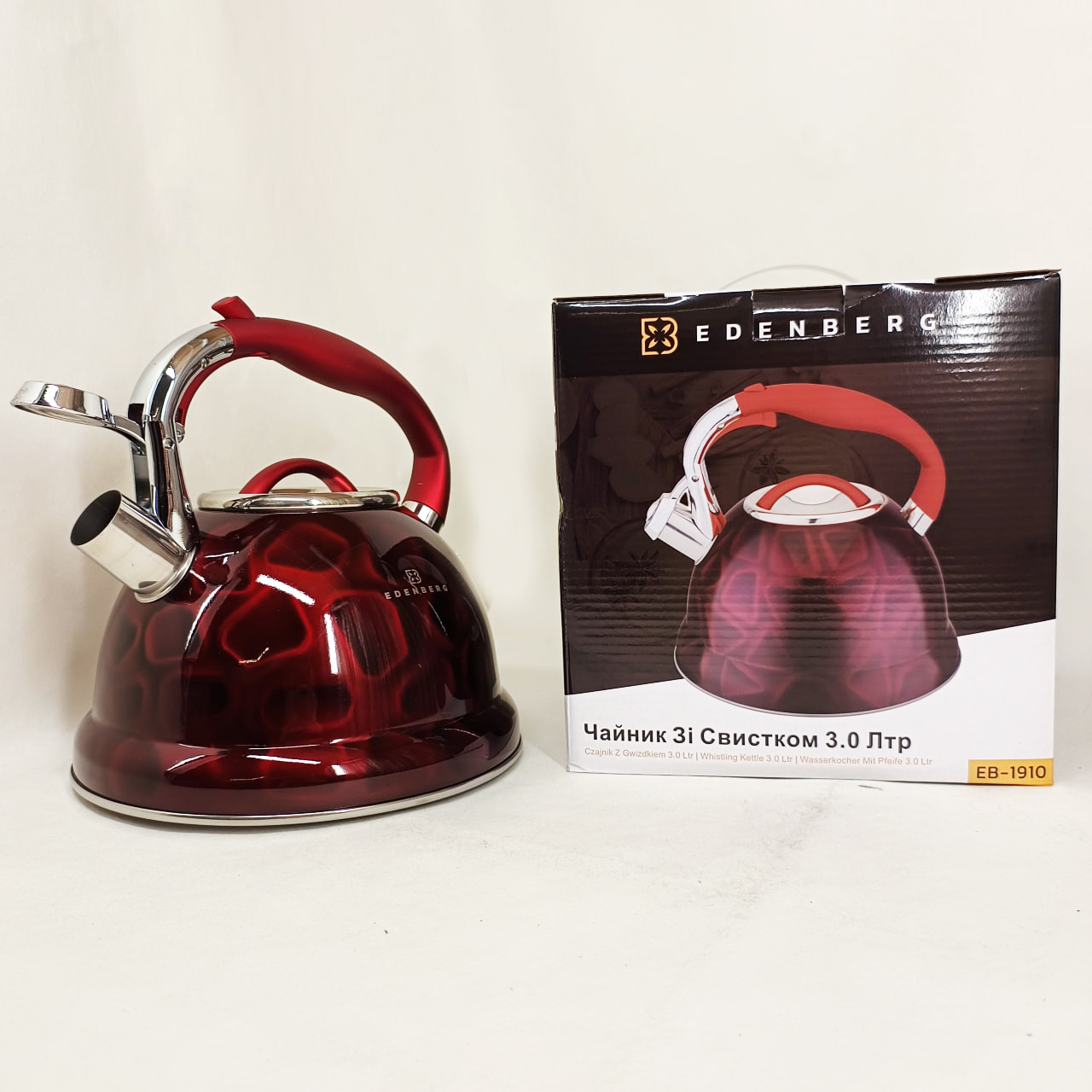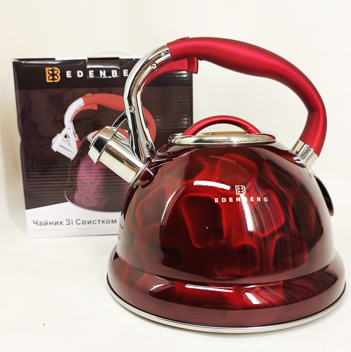 Чайник со свистком Edenberg EB-1910 с турбо индукционным дном 3л Red