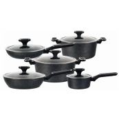 Главное преимущество набора — 5-слойное термоаккумулирующее дно, которое обеспечивает быстрый нагрев и равномерное распределение тепла, предотвращая пригорание. Надежная клепаная фиксация ручек гарантирует безопасное использование, а стильная зеркально-матовая полировка делает этот набор идеальным дополнением интерьера любой кухни.