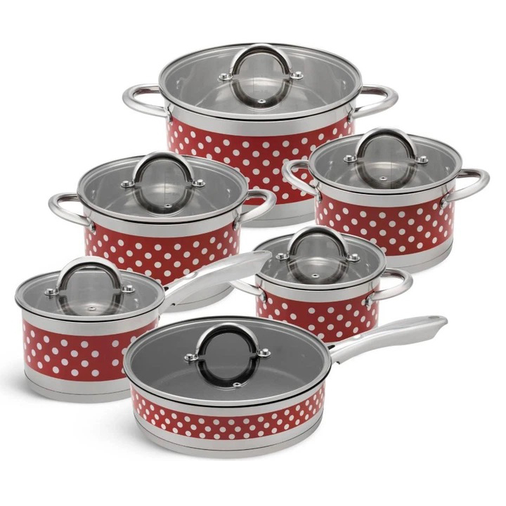 Набор посуды Edenberg EB-4055 в черном цвете с рисунком в горошек станет не только практичным помощником, но и стильным элементом кухни. Он изготовлен из качественной пищевой нержавеющей стали, которая не окисляется, не влияет на вкус блюд и безопасна для здоровья.