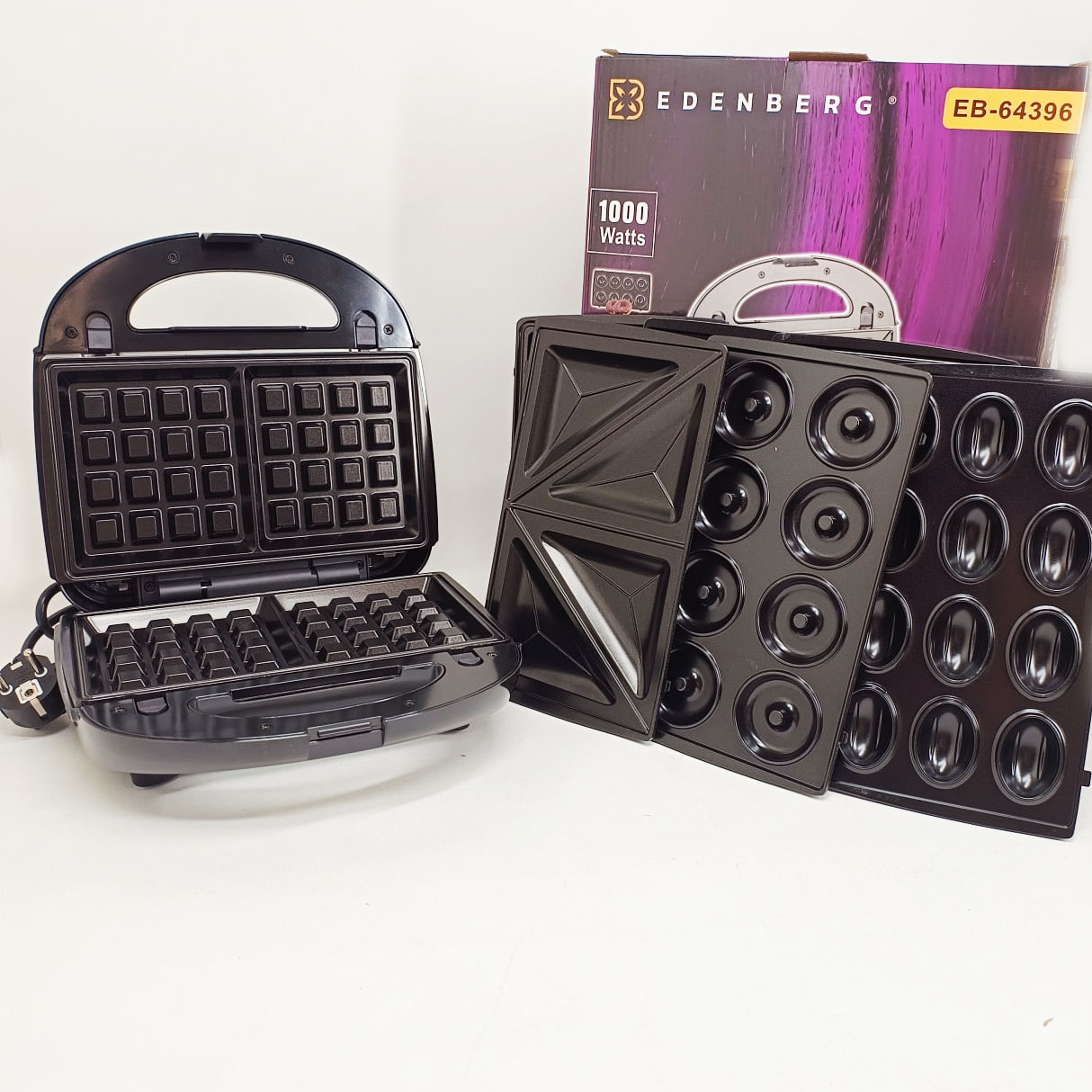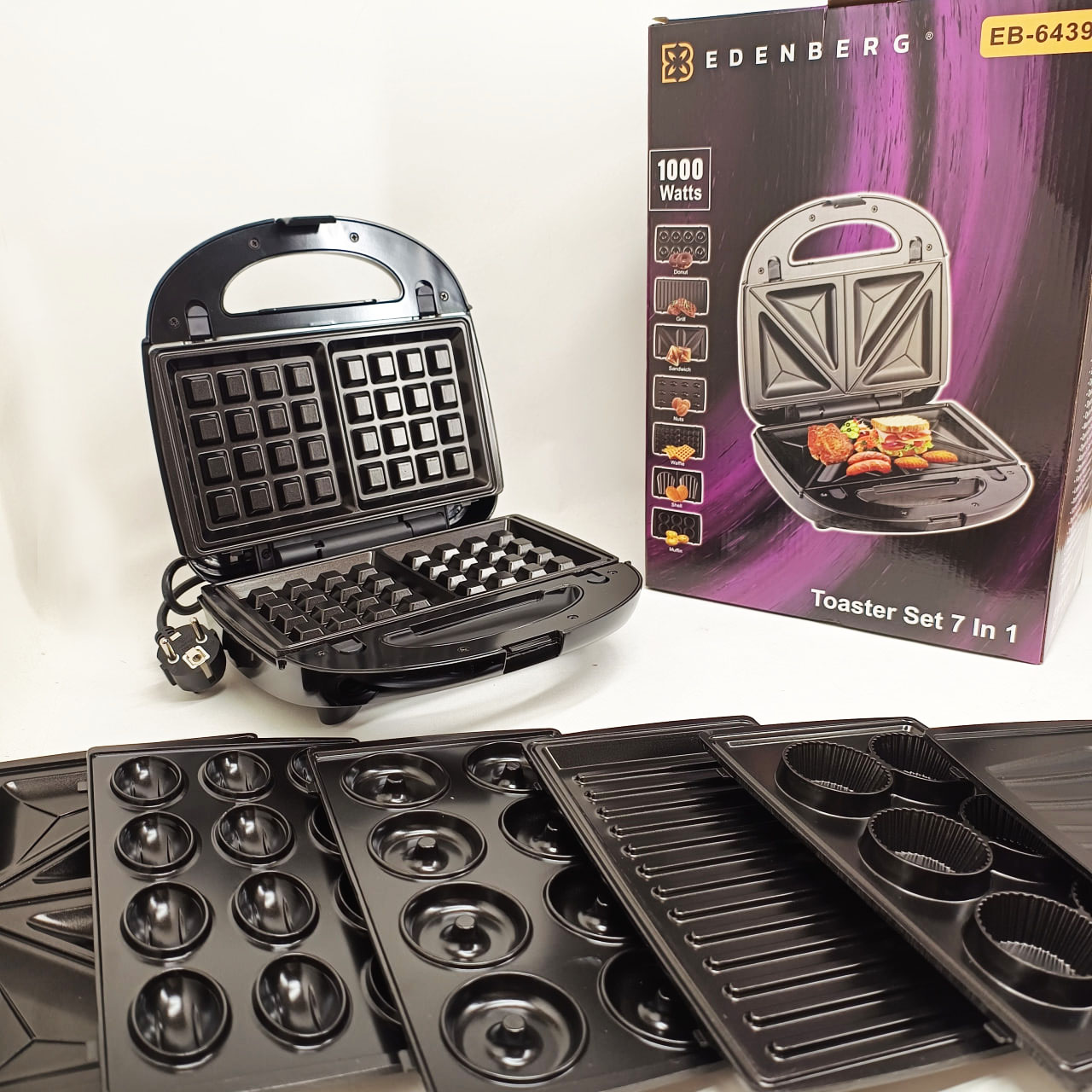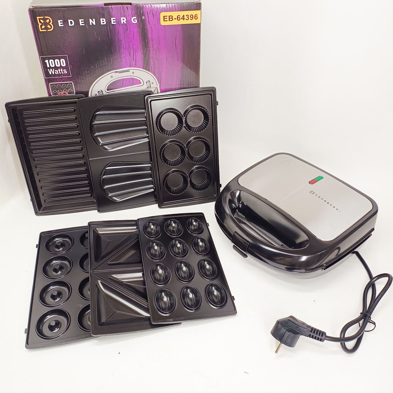Бутербродница 7в1 Edenberg EB-64396 1000Вт с насадками для приготовления вафель пончиков орешков печенья