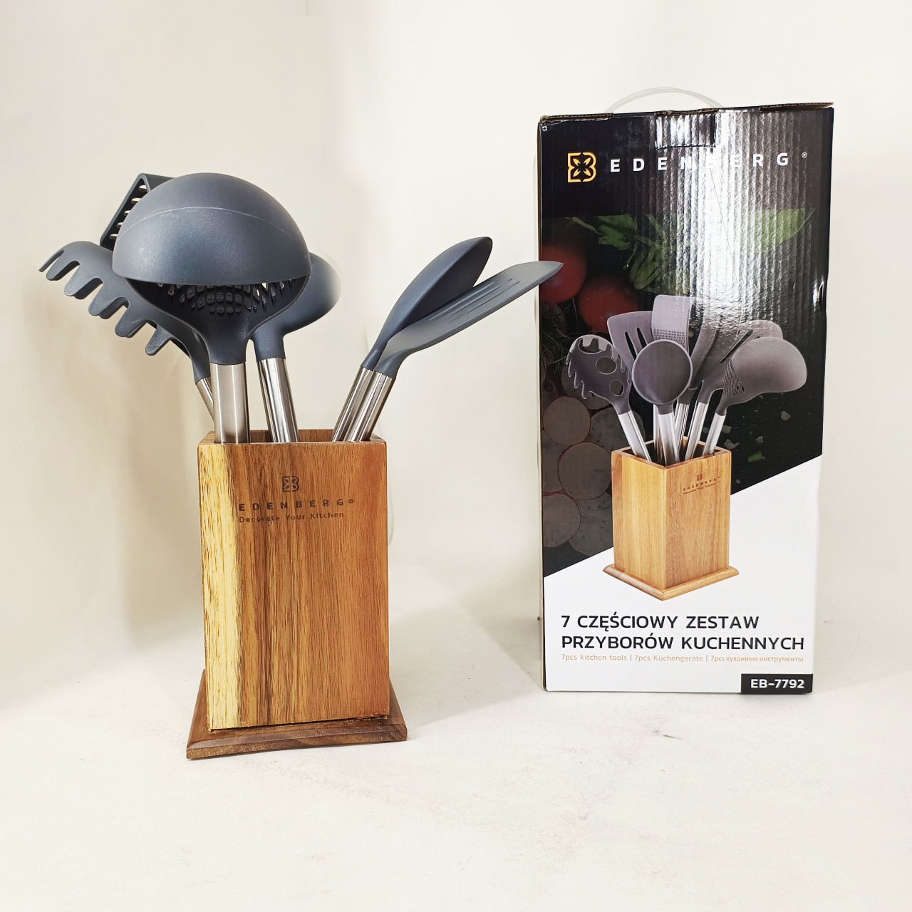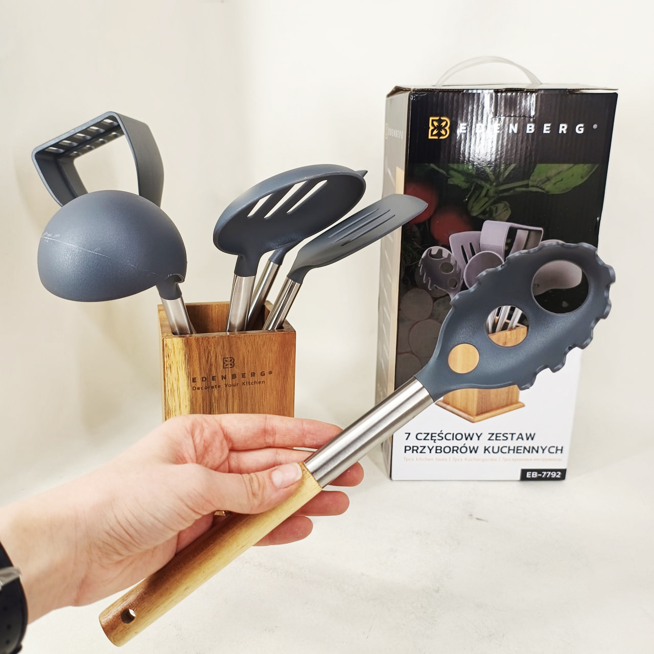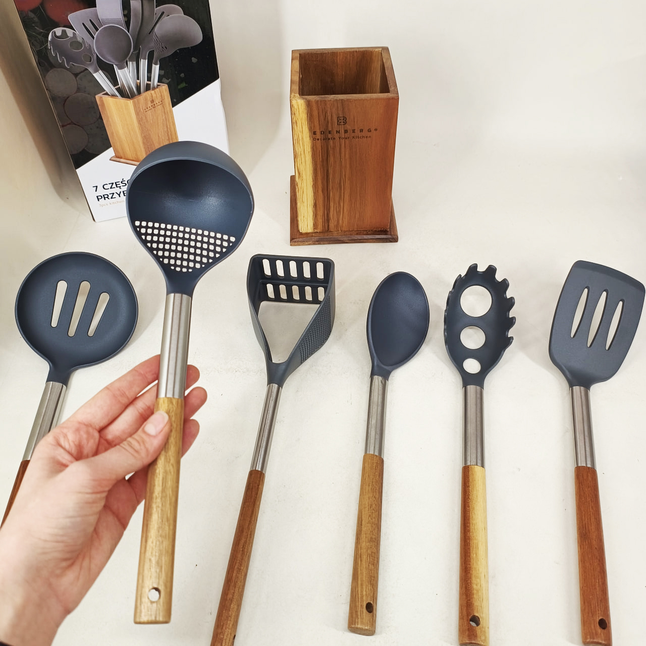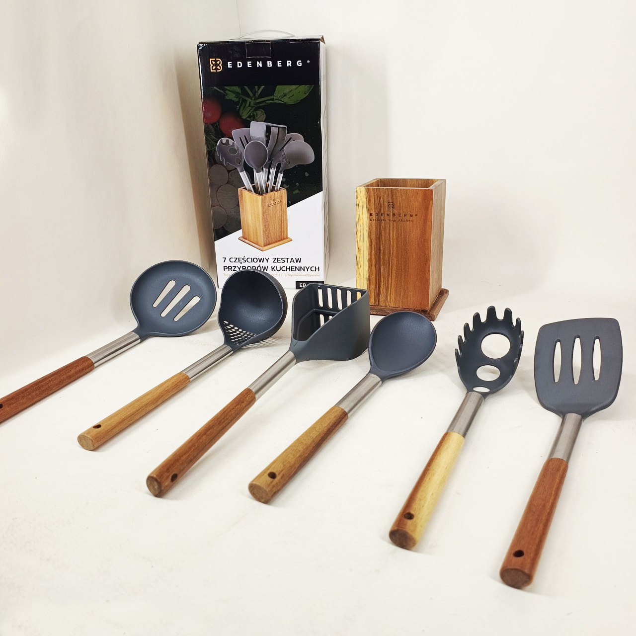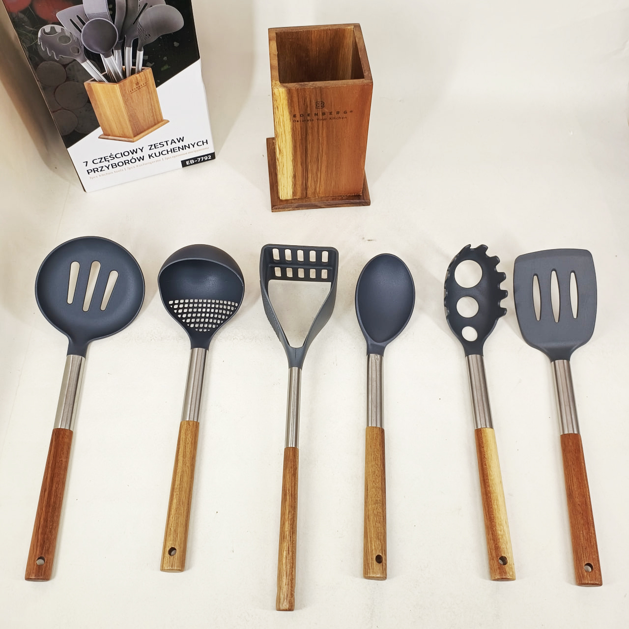 Кухонный набор приборов Edenberg EB-7792 — это премиальная серия кухонных принадлежностей, предназначенная для удобного, безопасного и эстетического приготовления пищи. Набор включает в себя 7 наиболее востребованных кухонных инструментов, размещенных на стильной деревянной подставке, что позволяет сохранять порядок на рабочей поверхности и иметь все необходимое под рукой.