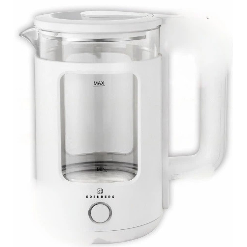 Чайник стеклянный электрический EB-83558 1500Вт Электрочайник с подсветкой Edenberg 2л White