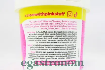 Універсальна паста The Pink Stuff Miracle Cleaning Paste очищає від усіляких забруднень будь-які тверді поверхні у вашому будинку.Відмінно підходить для очищення поверхонь у ванній кімнаті та на кухні і для очищення скла, фарфору, керамічної плитки. Ідеально підходить для чищення чашок, каструль, барбекю, керамічної плитки, скла, раковин, садових меблів, стільниць, кухонних плит та багато іншого. ТОП запити Купити побутову хімію Сирна нарізка Джем ціна Соєвий соус Засіб для миття кухонних меблів Купити маршмеллоу Твердий сир