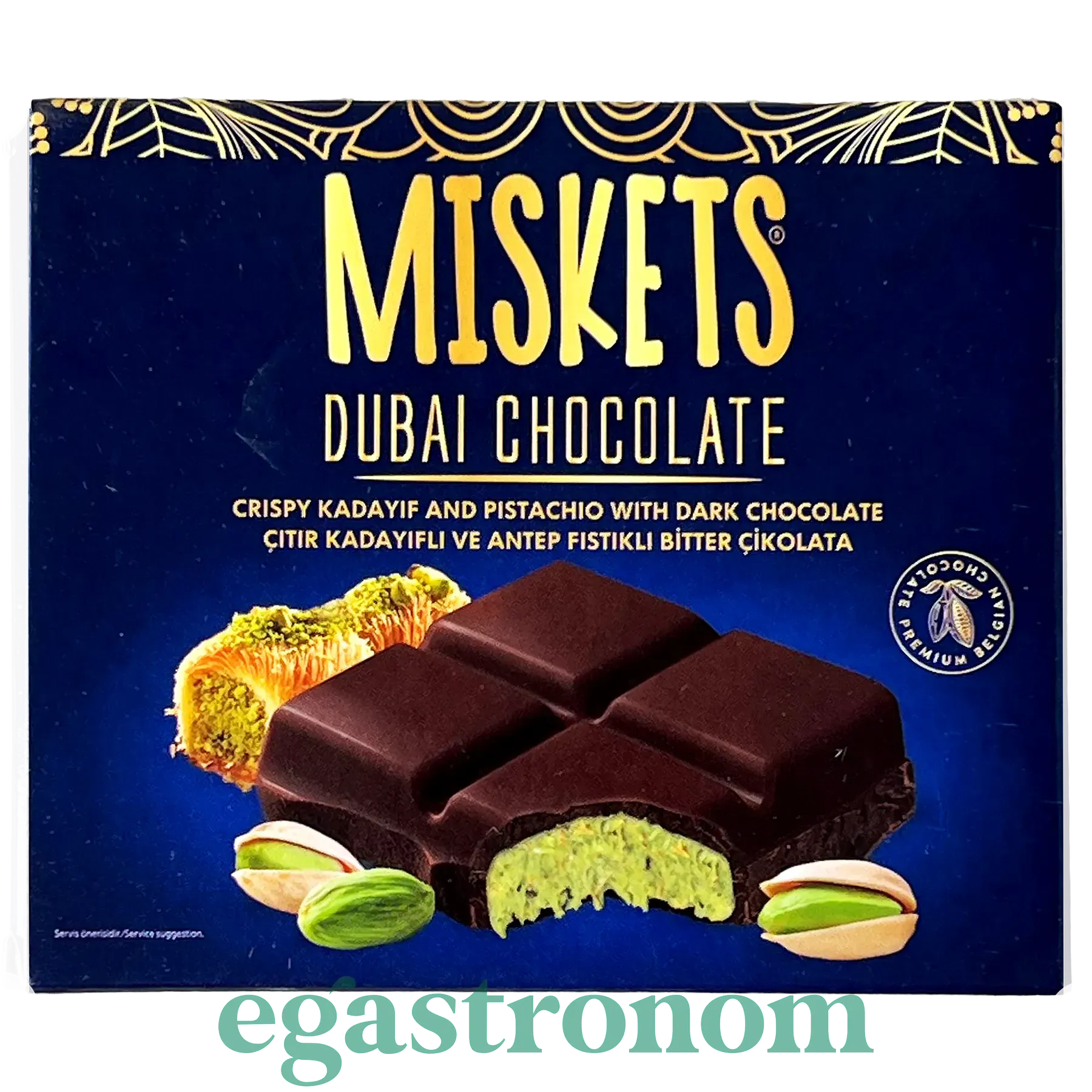 Шоколад Дубайський чорний з фісташковою начинкою Міскетс Miskets 100g 12шт/пач 6пач/ящ