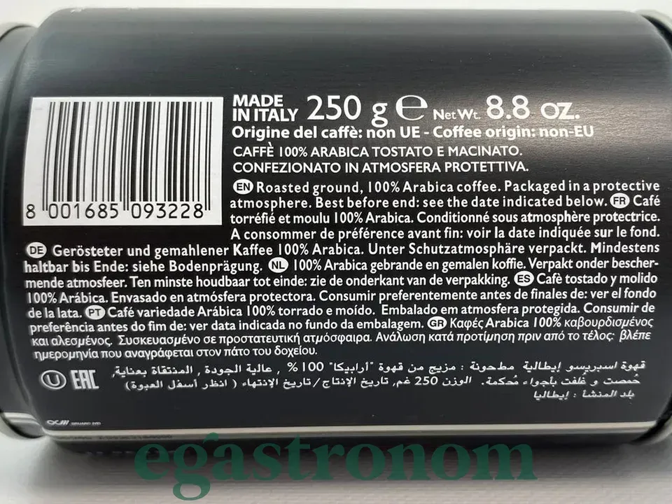 Представник елітної італійської кави середнього обсмажування. Це 100% арабіка, у якій використовуються зерна кількох сортів, зібраних у всьому світі. Має приємний смак, має шоколадно-кремовий відтінок і довгий післясмак. Це кава для справжніх гурманів. Має міцний і насичений смак і характерну гіркуватість зі стійким післясмаком. Класичне поєднання глибоко терпкого смаку та яскраво вираженого аромату. ТОП запити Товари для гігієни Купити сир лазур Горіхи ціна Гострі соуси купити Магазин сирів Ціна сухофрукти Сонцезахисні засоби