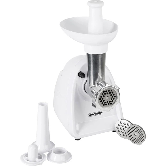 Мясорубка Mesko MS 4809 создана для эффективного приготовления фарша, колбас и даже маковых масс. В комплекте три сменных сита с отверстиями разного диаметра: 3 мм для нежного паштета и фарша, 5 мм - универсальный вариант для котлет, фрикаделек и даже овощей, и 7 мм - для более грубой текстуры, идеальной для колбас. Благодаря комплектации с наполнителем для колбас, насадкой для приготовления кеббе и удобным плунжером, вы имеете полный набор для мясной кулинарии дома.