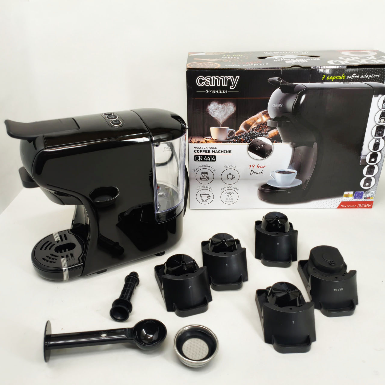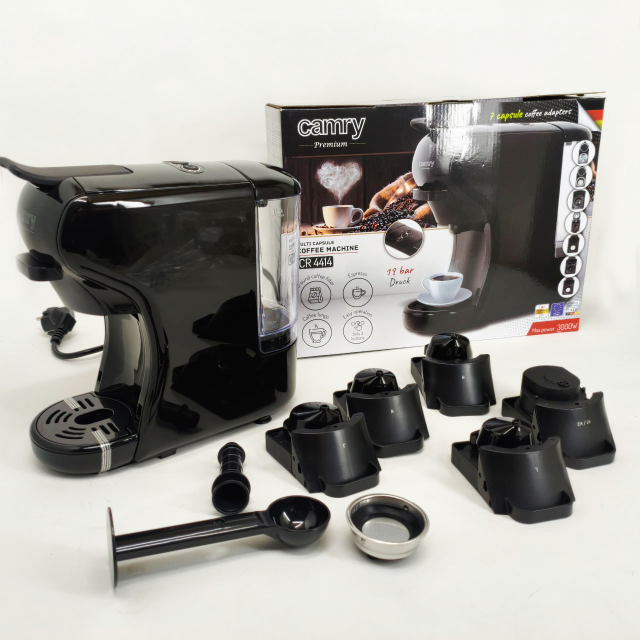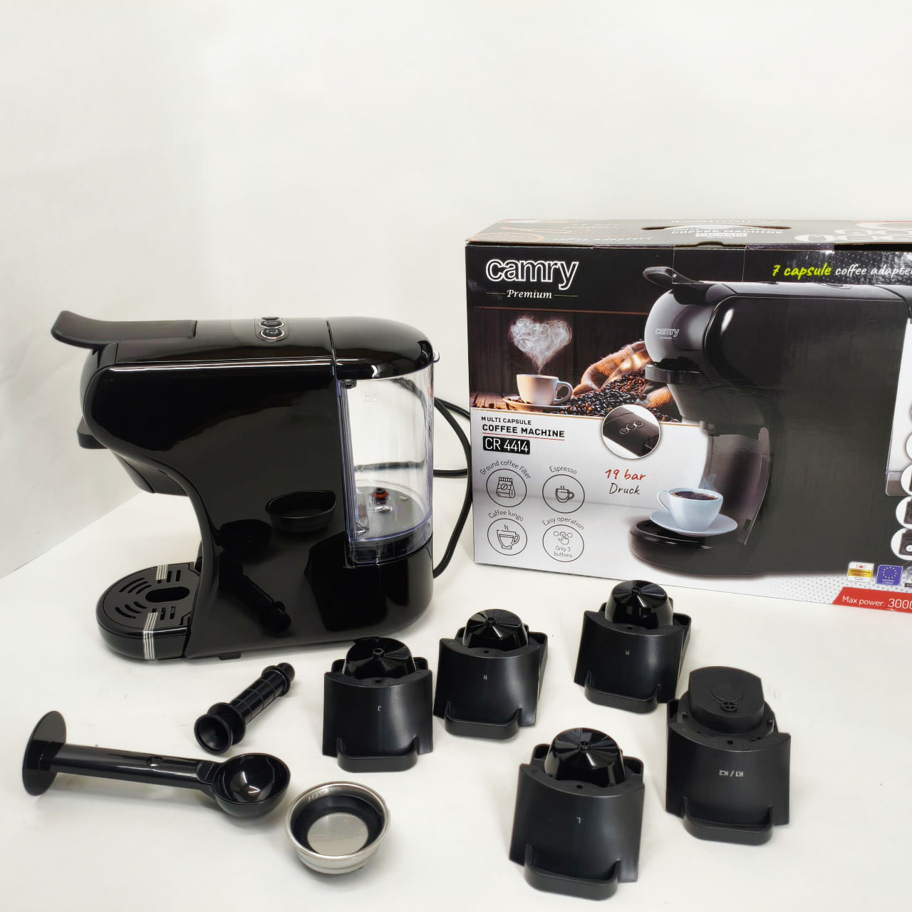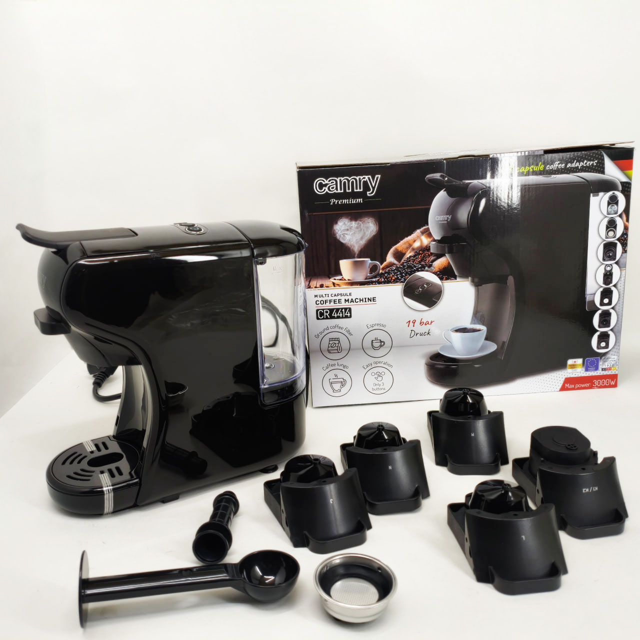 Капсульная кофемашина Camry CR 4414 3000Вт рожковая для молотого кофе и 5 адаптеров для капсул Black