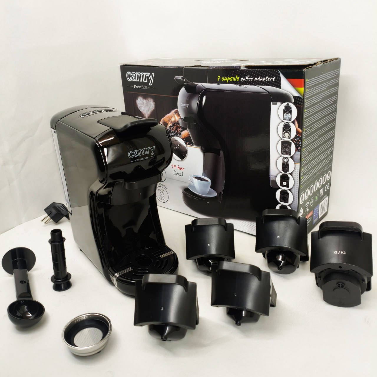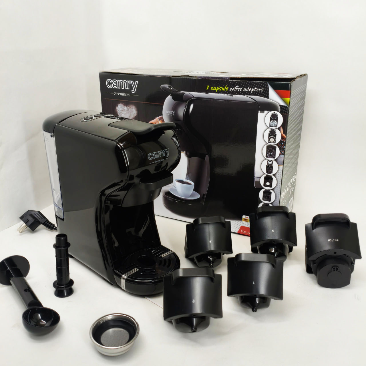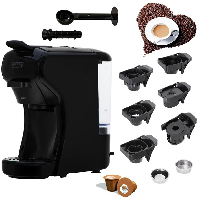Camry CR 4414 – это современная многофункциональная кофеварка, которая позволяет приготовить 9 различных видов кофе в одном устройстве. Она оснащена 5 адаптерами для различных типов капсул, что дает возможность использовать капсулы таких брендов, как Nespresso, Dolce Gusto, Lavazza Blue, Lavazza Modo Mio, Caffitali, готовить кофе из молотого кофе благодаря специальному фильтру в комплекте.