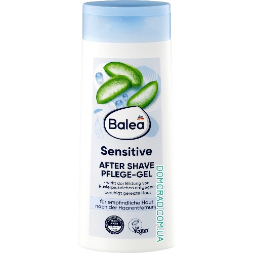 Гель після гоління Balea Sensitive забезпечує приємне м'яке та розслаблене відчуття на шкірі. Він зволожує шкіру протягом 24 годин та заспокоює подразнення після гоління. Також допомагає запобігти появі подразнень після гоління. Ідеально підходить для чутливих ділянок шкіри, таких як лінія бікіні або пахви. Особливо ніжна формула заспокоює подразнену шкіру. Містить алое вера, пантенол та алантоїн.