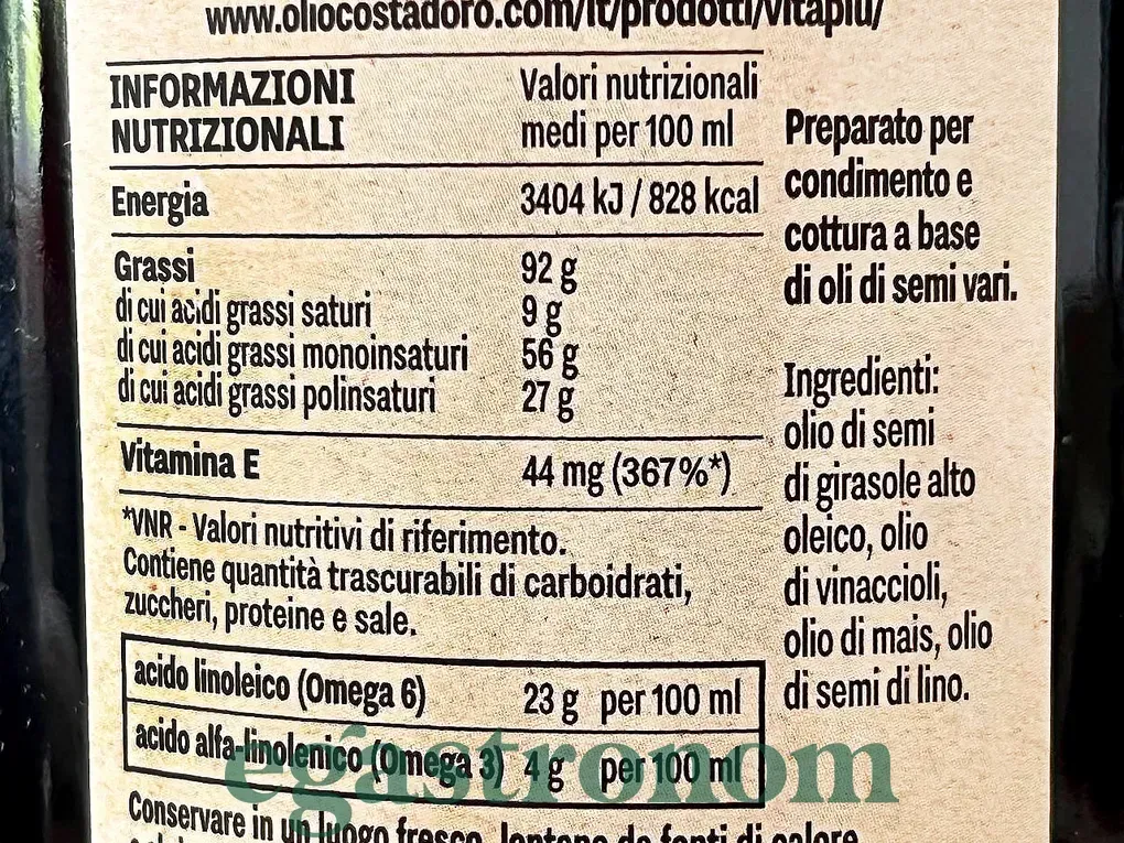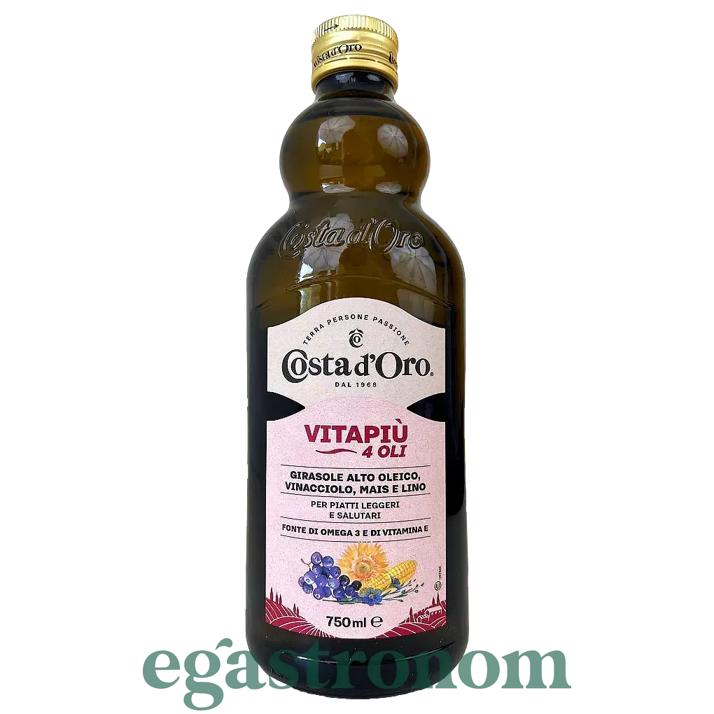 Олія Costa d'Oro Omega 4 — це натуральна суміш рослинних олій першого холодного віджиму, створена для щоденного вживання з користю для здоров’я. Завдяки високому вмісту омега-3 та омега-6 жирних кислот, а також вітаміну Е, вона підтримує здоров’я серцево-судинної системи та знижує рівень холестерину. Має м’який смак без гіркоти, ідеально підходить для заправки салатів, приготування соусів, гарнірів та легкого смаження. ТОП запити