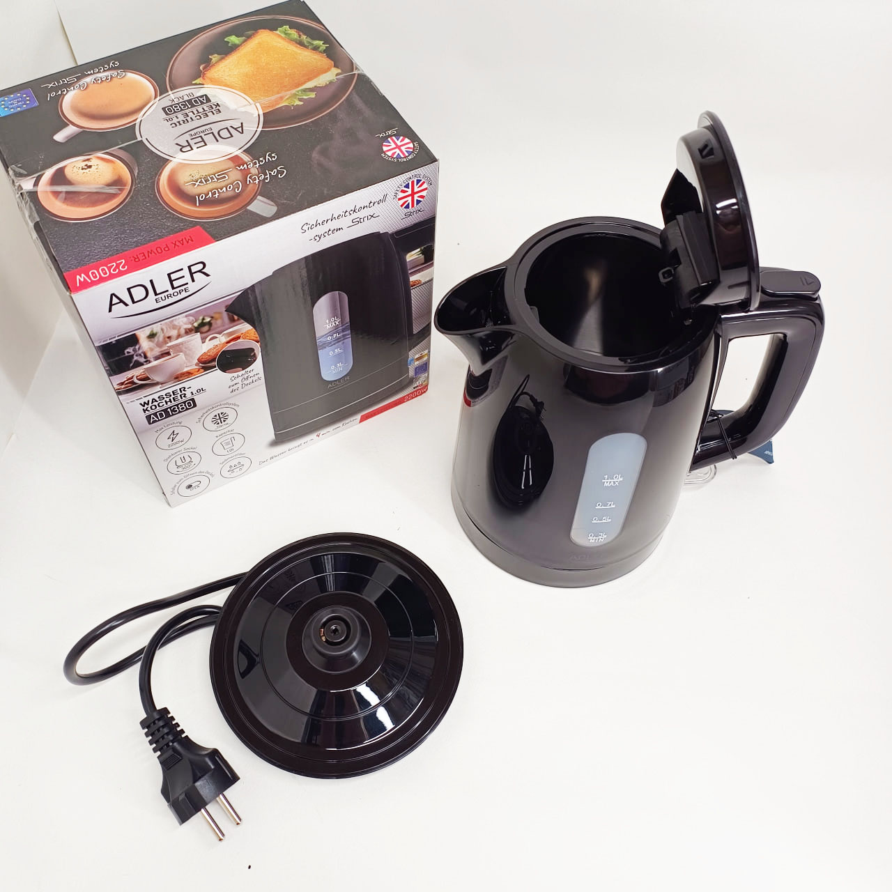 Adler AD 1380 произведён из высокопрочного эко-пластика, он достаточно быстро кипятит воду, не придавая ей запаха и не меняя вкуса. Благодаря фильтру, Вы сможете пить чай или кофе без накипи, которая появляется из-за некачественной воды. Чайник Adler AD 1380 автоматически отключается, когда закипает.