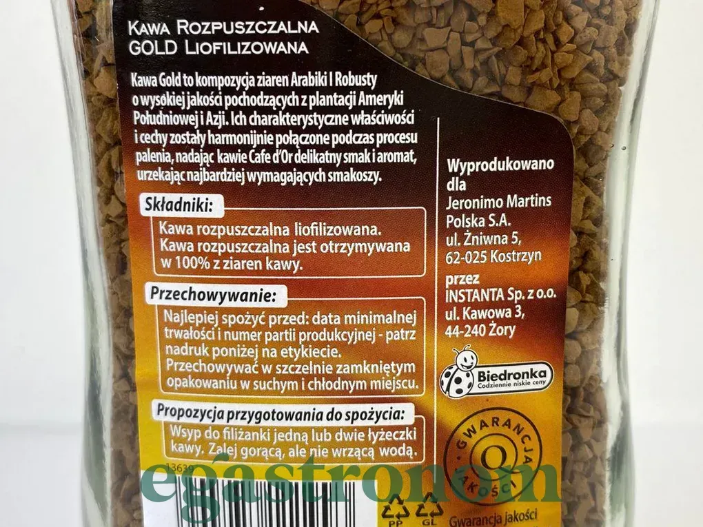 Надаємо Вашій увазі каву Cafe d'Or Gold! У виготовленні фахівці використовують високоякісну сировину, яка зможе надати каві темний відтінок, а також чудовий аромат і тонкий смак, яким зможе насолодитися кожен. Гранули зерен арабіки миттєво розчиняються в окропі, після чого напій готовий до вживання. Багатогранний запах, і колір темного шоколаду змусить Вас закохатися в цю каву, яким захочеться насолоджуватися щоранку. ТОП запити