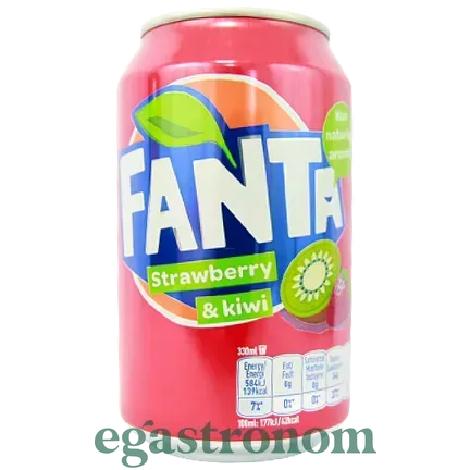 Безалкогольний прохолодний напій Fanta strawberry&kiwi – це насичений смак та аромат стиглої полуниці та кисленького ківі. Напій виготовлений на натуральних соках та ароматизаторах.