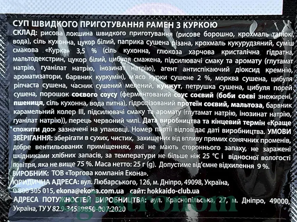 Суп швидкого приготування рамен Хокайдо Hokkaido 25g 25шт/ящ