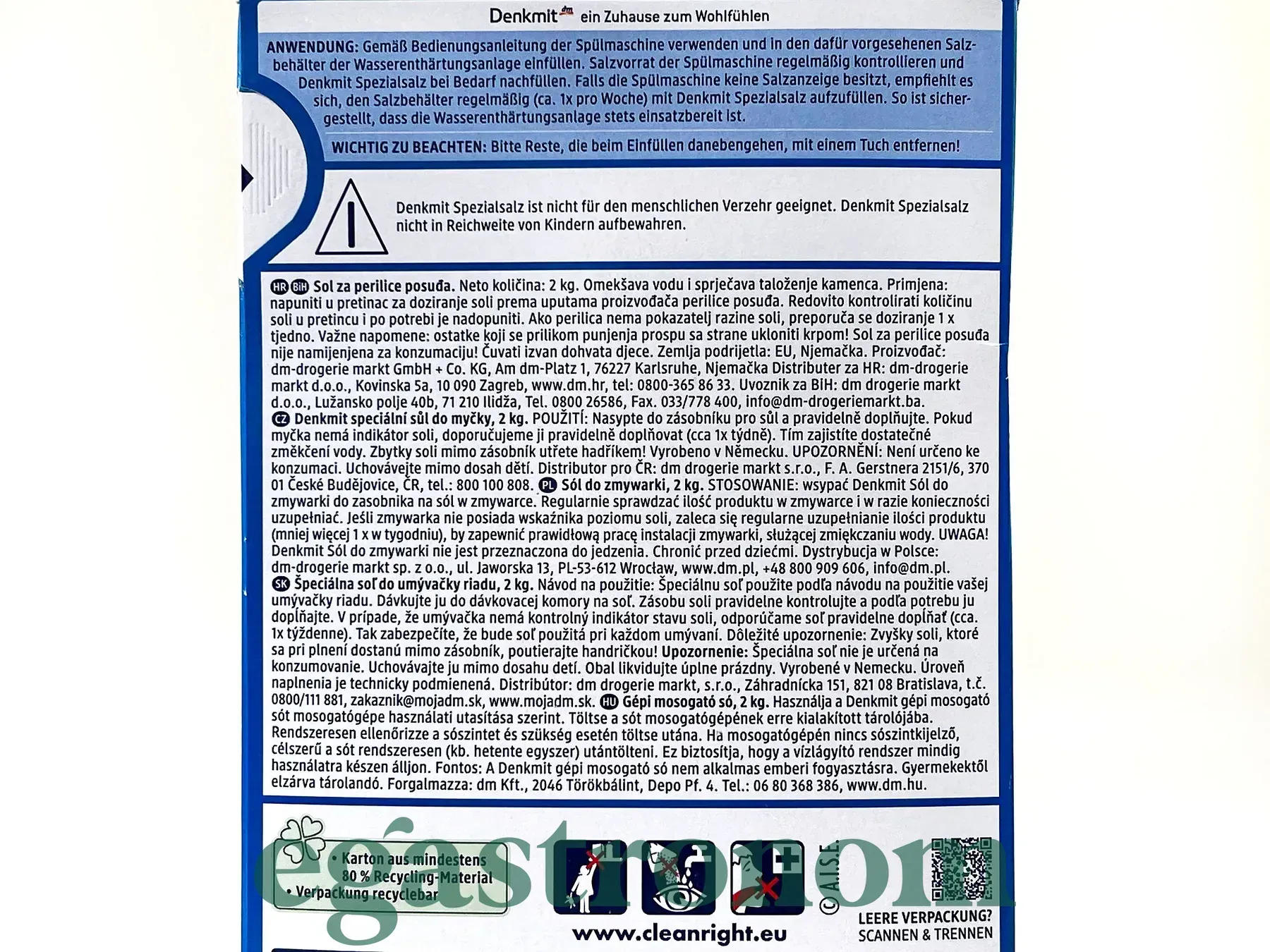 Сіль для посудомийних машин ефективно пом'якшує воду і покращує роботу посудомийної машини, посилюючи дію миючого засобу і видаляючи білий наліт і сліди патьоків на вашій посуді. Склад солі, не містить технічних домішок, що забезпечує оптимальне функціонування пристрою для пом'якшення води посудомийної машини (іонно-обмінного фільтра), що запобігає появі патьоків на посуді і утворенню вапняного нальоту на робочих деталях машини. Інші солі можуть містити домішки заліза або солей вугільної кислоти, які можуть призвести до поломки пристрою для пом'якшення води. ТОП запити