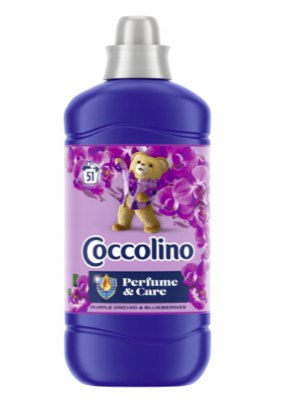 Кондиціонер для білизни Coccolino Perfume&Care Purple Orchid & Blueberry – засіб, що надає випраним речам незвичайну м'якість та тривалу свіжість. Його концентрована формула містить аромат орхідеї та ожини, який м'яко вивільняється під час руху тканини, дозволяючи вам довго насолоджуватися нею після прання. Технологія мікрокапсул, що міститься в кондиціонері для білизни Coccolino, продовжує аромат на одязі до 100 днів. Кондиціонер для білизни Coccolino містить ще більше пом'якшувачів, ніж раніше. Запатентована технологія Pro-Fiber недоступна в інших кондиціонерах для білизни: вона допомагає підтримувати форму одягу, захищає волокна тканини, а також кольори і принти.