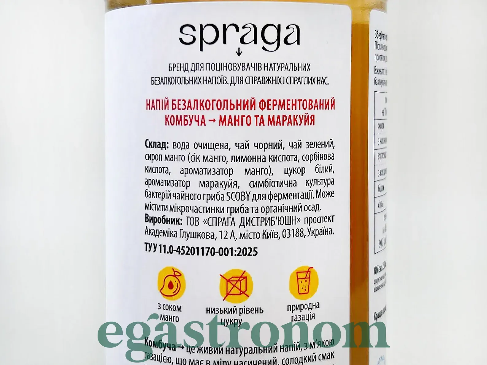 Комбуча манго та маракуйя (скло) Спрага Spraga 250ml 12шт/ящ