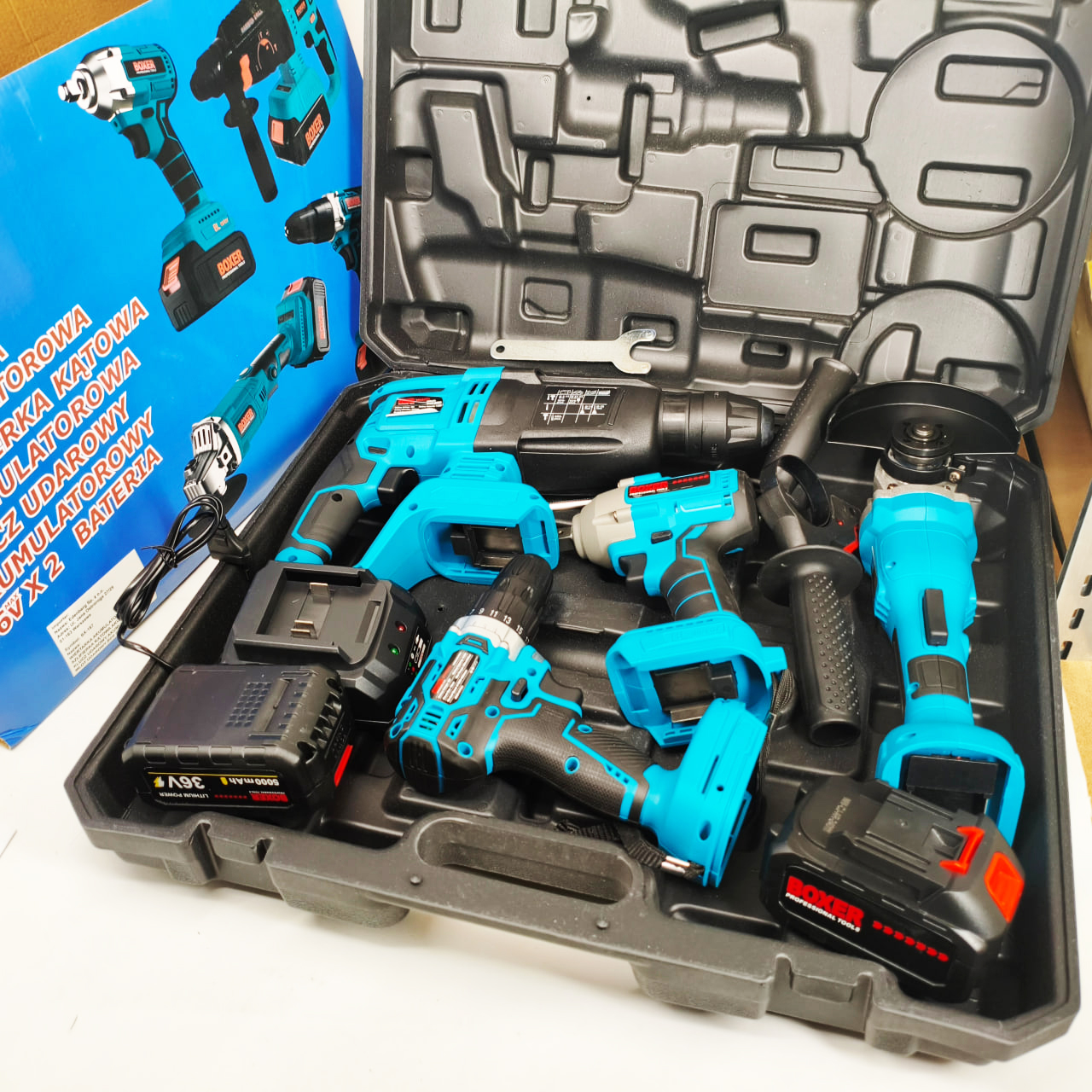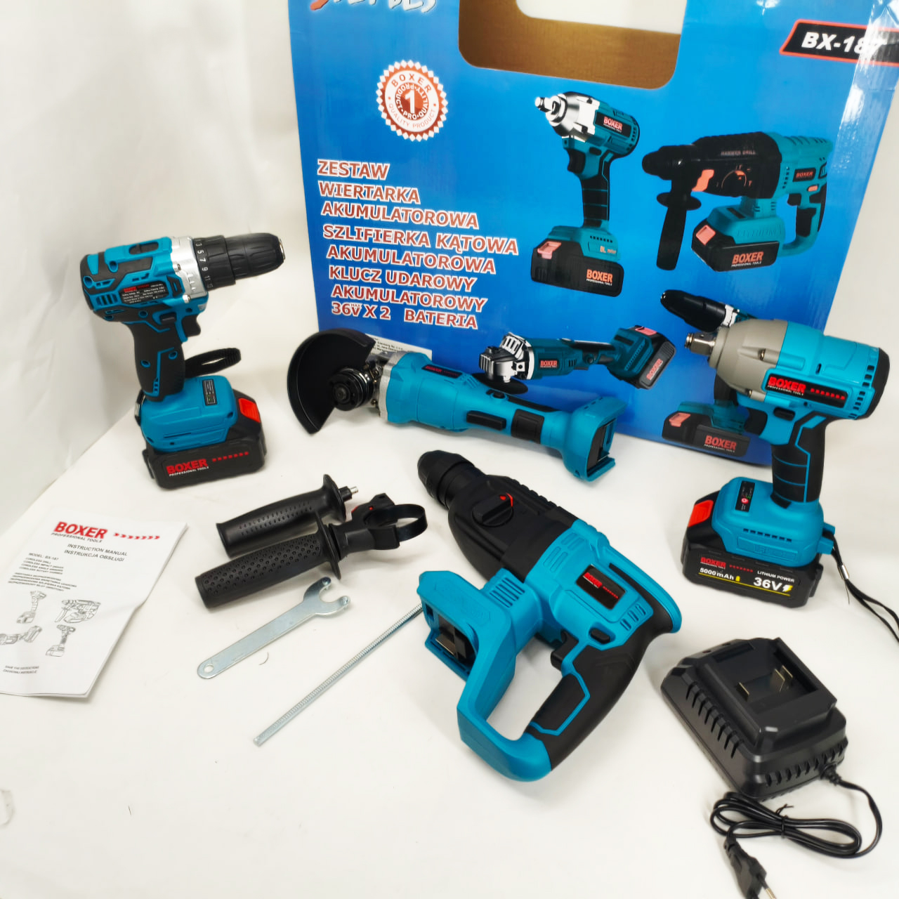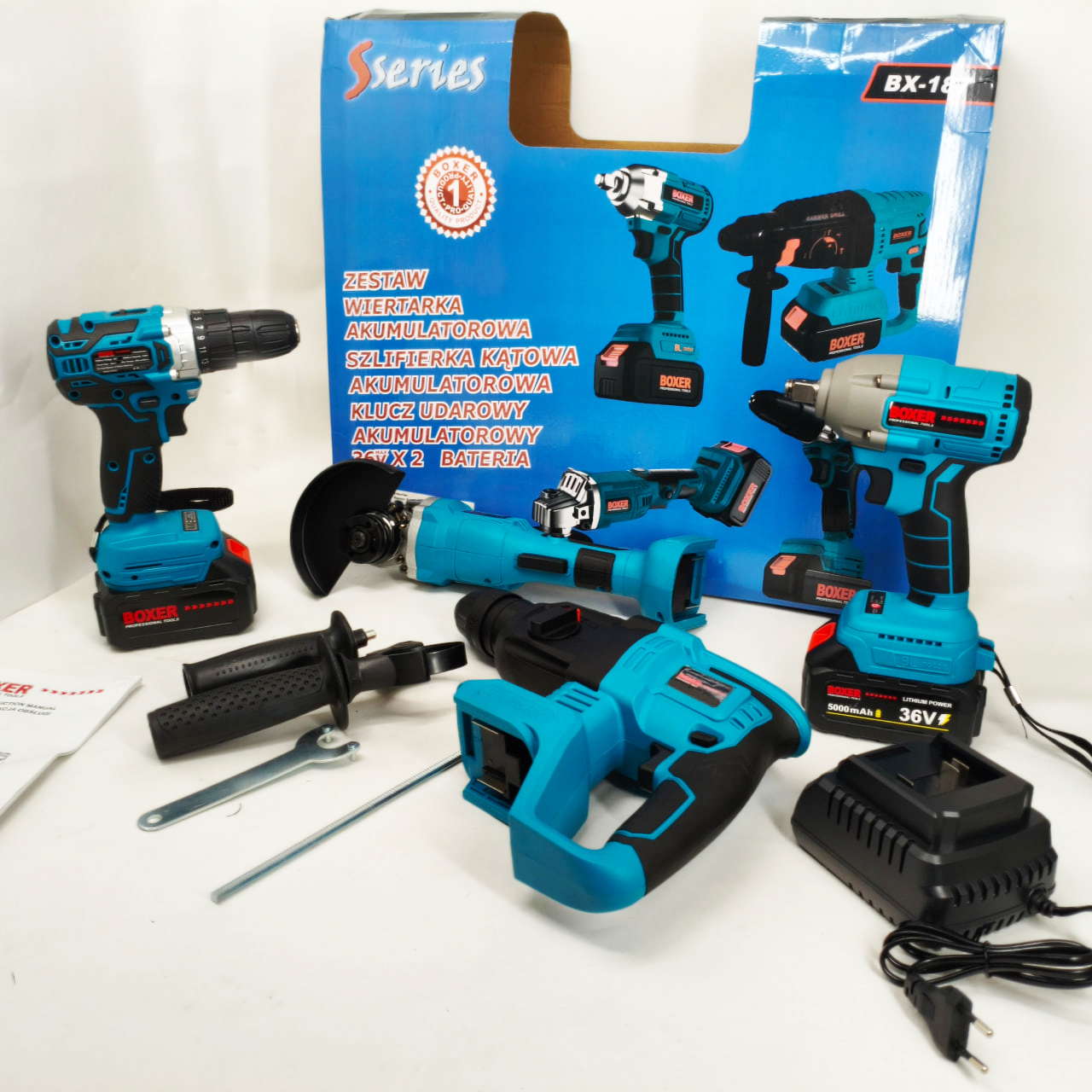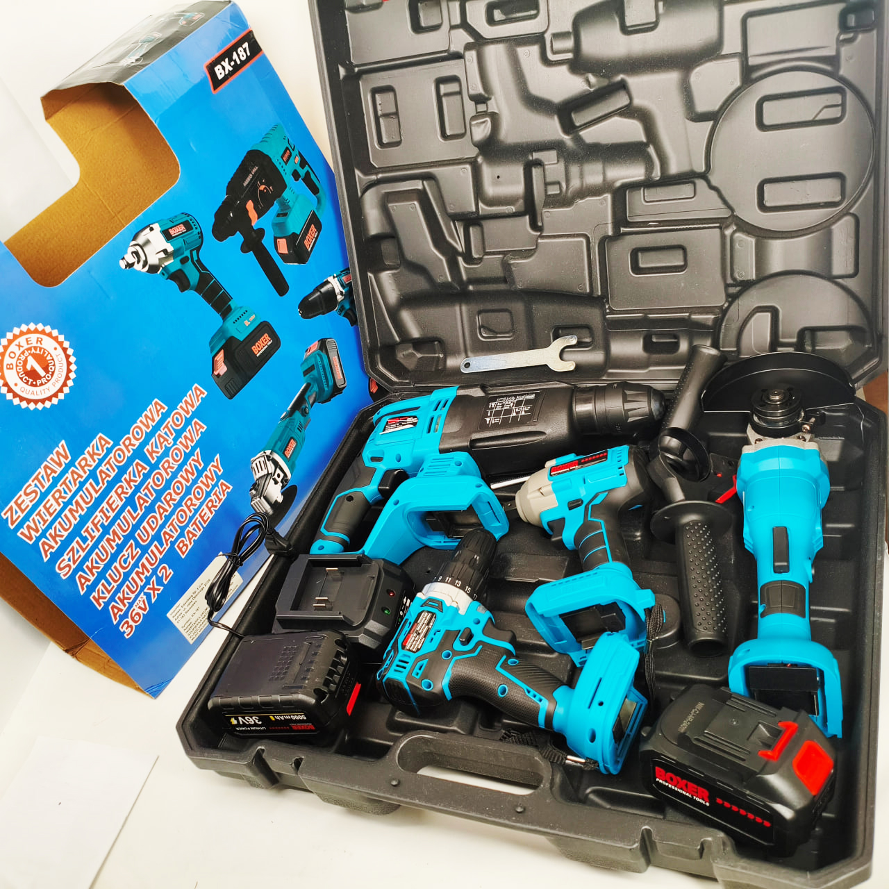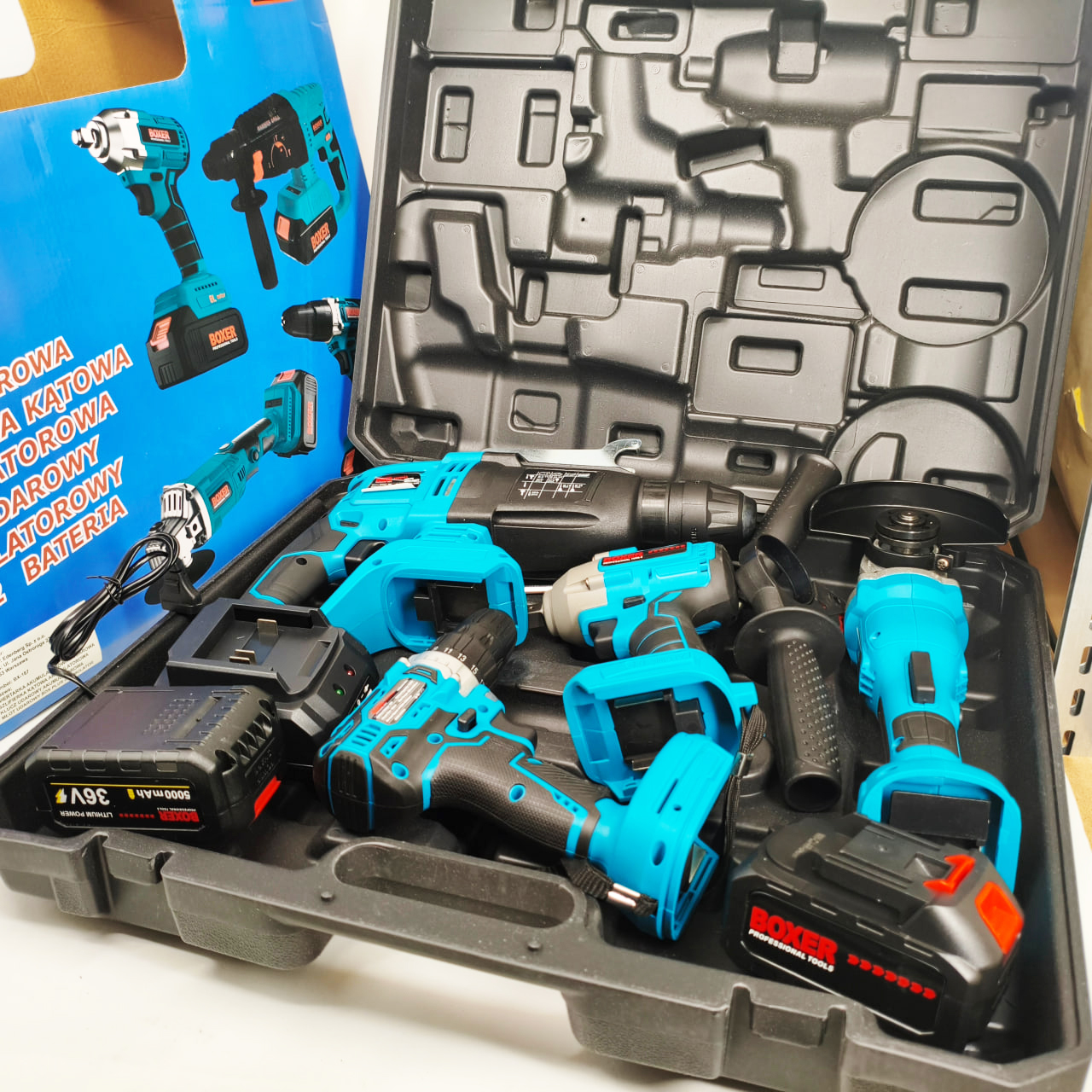 - Набор аккумуляторных инструментов Boxer 4in1 — Это все, что вам нужно для разнообразных рабочих задач, от сверления и завинчивания до резки и сноса. Этот набор облегчит вашу жизнь и сделает ваши рабочие проекты более легкими и эффективными. Благодаря двум аккумуляторам и быстрому зарядному устройству вы никогда не разрядитесь.