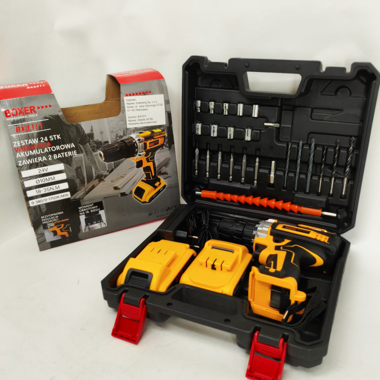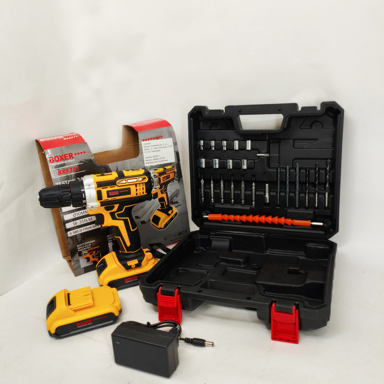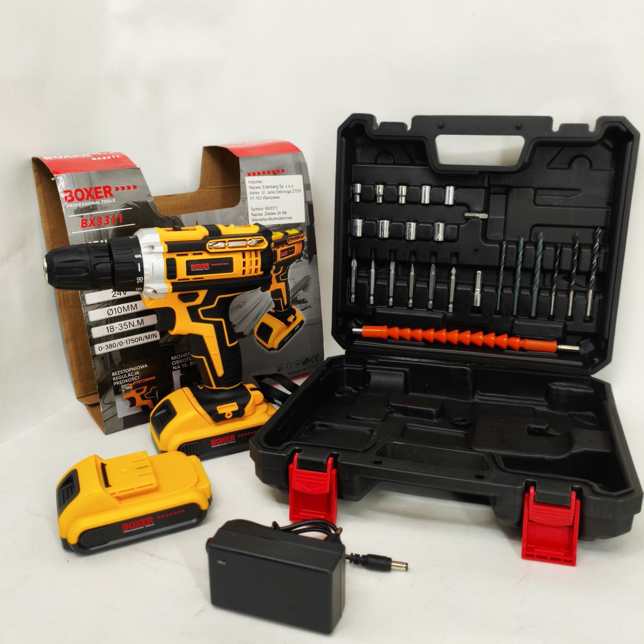Профессиональный аккумуляторный шуруповерт BOXER BX-3311 идеально подходит для выполнения различных строительных и ремонтных работ. Обладает высокой мощностью 24V и ёмкостью аккумулятора 2,8Ah, что обеспечивает продолжительное время работы и надежность. Компактный и эргономичный дизайн делает его удобным в использовании. В комплекте идут несколько насадок и зарядное устройство.