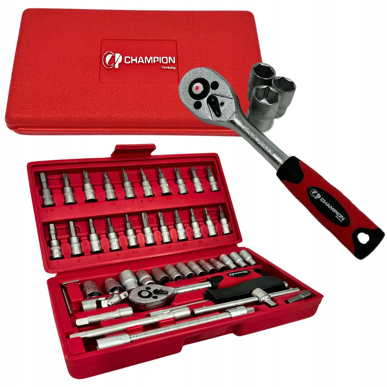 Набор торцевых ключей с трещотками 46 шт. Champion CP-248 ключи и наборы торцевых головок. Изображение №2 Набор торцевых ключей с трещотками 46 шт. Champion CP-248 ключи и наборы торцевых головок. Изображение №3