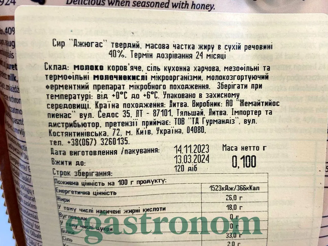 Сир твердий 40% Джугас Delicate 24M Dziugas 100g 10шт/ящ