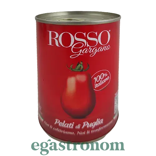 Консервовані помідори Rosso Gargano, 100% натуральний італійський продукт. Добірні плоди, вирощені на плідних грунтах Апулії без застосування хімічних добрив і дбайливо зібрані на піку своєї зрілості. Очищені від шкірки і законсервовані в густому соці томати володіють приємним свіжим ароматом і характерним солодко - кислим смаком. Томати консервовані Rosso Gargano Pelati di Puglia ідеально підходять для приготування соусів, заправок, супів, традиційної італійської піци і великої кількості різноманітних страв. Консервовані помідори прикрасять будь-яку страву, підкреслять його смак і додадуть йому особливий аромат. ТОП запити Чеддер Німецькі солодощі Мусорні пакети Ціни на молочні продукти Напівтверді сири Продукти імпортного виробництва Соуси до салатів