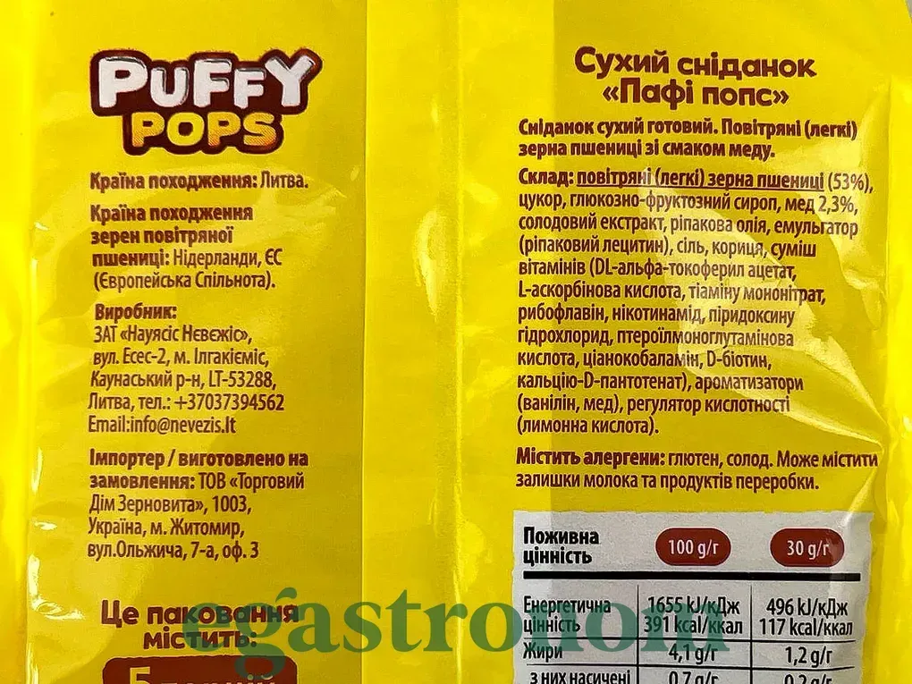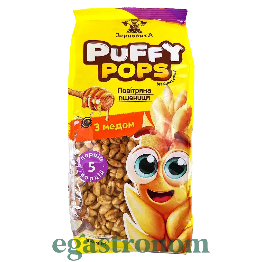 Сухий сніданок повітряна пшениця мед Зерновита Пафі Попс 150g 30шт/ящ